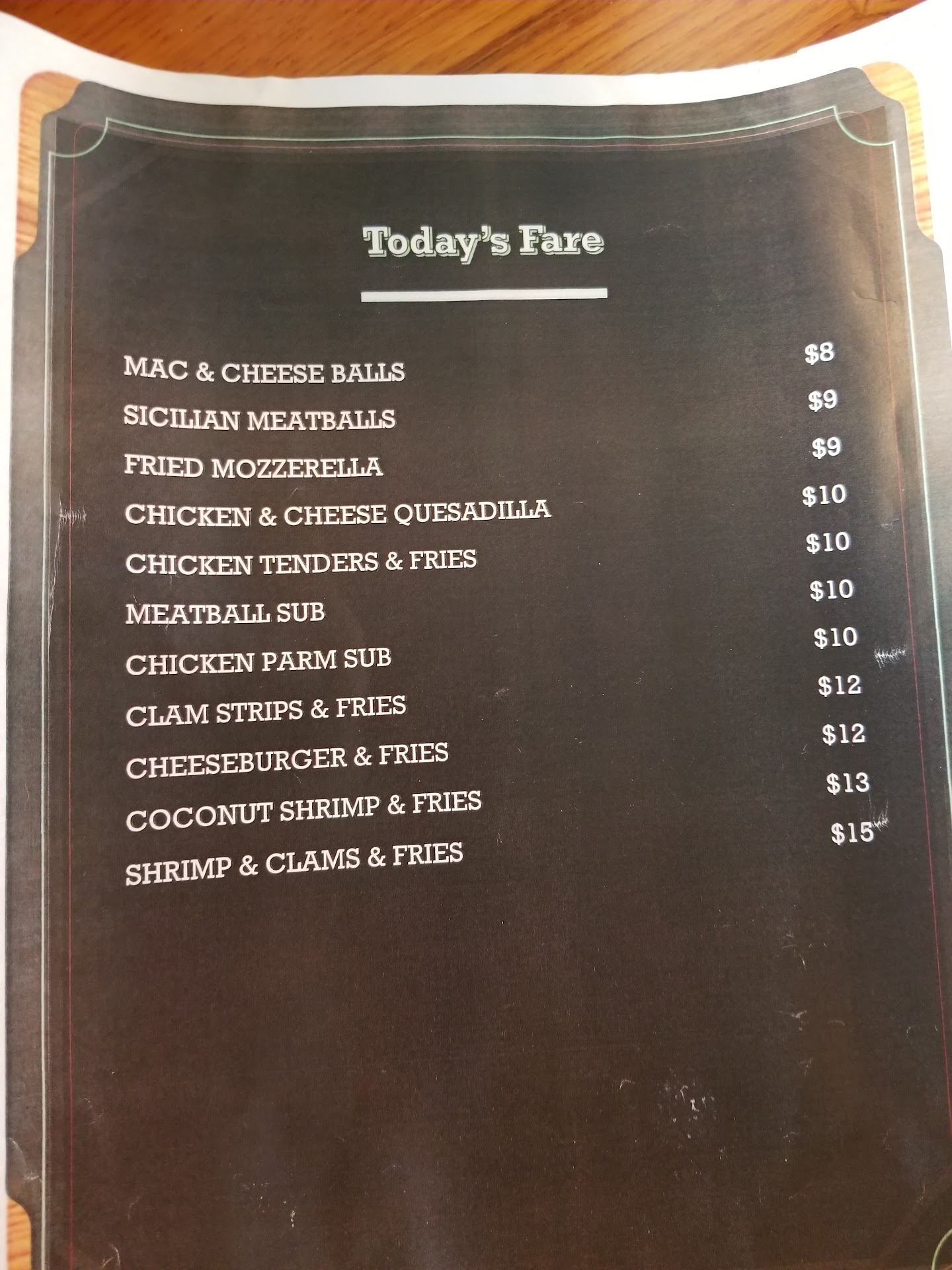 Went here after work to get a bite to eat. Food was ok the problem was the beer, the beer menu doesn't have any prices and is written on a piece of cardboard with sharpie, so upon asking for how much the beer list was the bartender proceeded to tell me the highest one was $5... Come to find out after paying and getting my bill I was getting charged 7.50 for a can of fishers island lemonade!!!! I wasn't even made aware of the fact that I was going to get charged more for this can and the bartender got rude saying it was not included in the 4 to 5 price because it was written in black sharpie vs blue which wasn't even specified at the beginning and you couldn't even tell the difference between the two because of the poor lighting. Oh and wasn't even given glass to put the lemonade in....