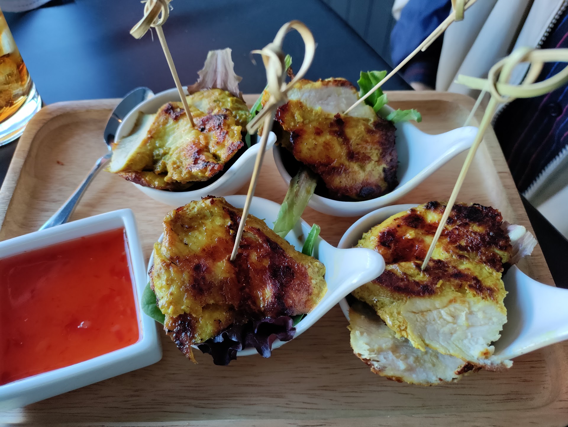I had some soup and dumplings and my friend had the chicken on a skewer and everything was delicious including the Thai tea that I ordered.
