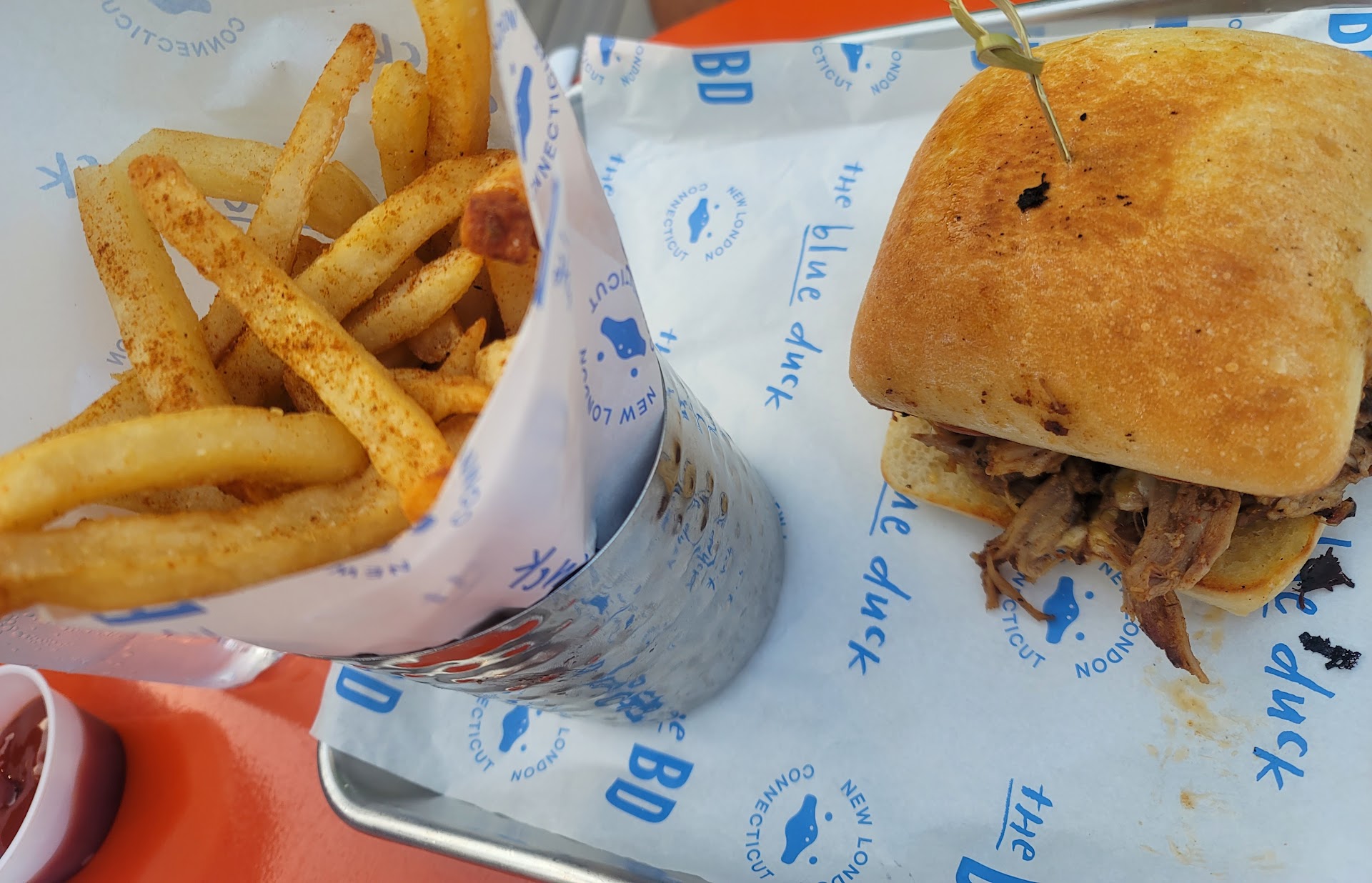 To start, our fries were served cold, and the Blue Duck Burger was unfortunately overcooked. One of my friends ordered the bao buns and specifically asked for no cilantro. While we understand it can be hard to hear clearly in such a loud and overstimulating environment—between the trains, horns, and boats—we do wish the request had been confirmed or double-checked. The bao buns arrived with cilantro, but my friend didn’t want to cause a delay and politely declined having it remade since we were already halfway through our meal.