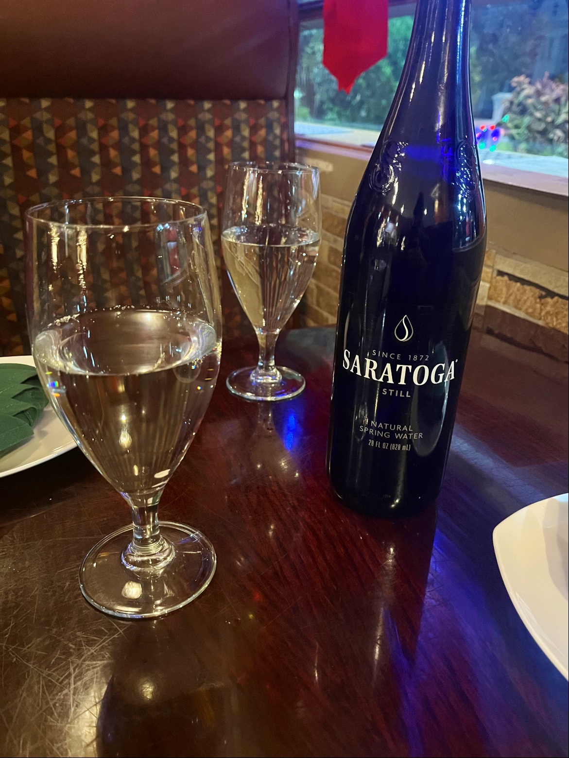 Drink: I don't drink, but they do have bottled water at the table. It costs unless you want tap. I stuck to the bottle. Plain, no-bubble water, although they do have sparkling water and other soft drinks, too.