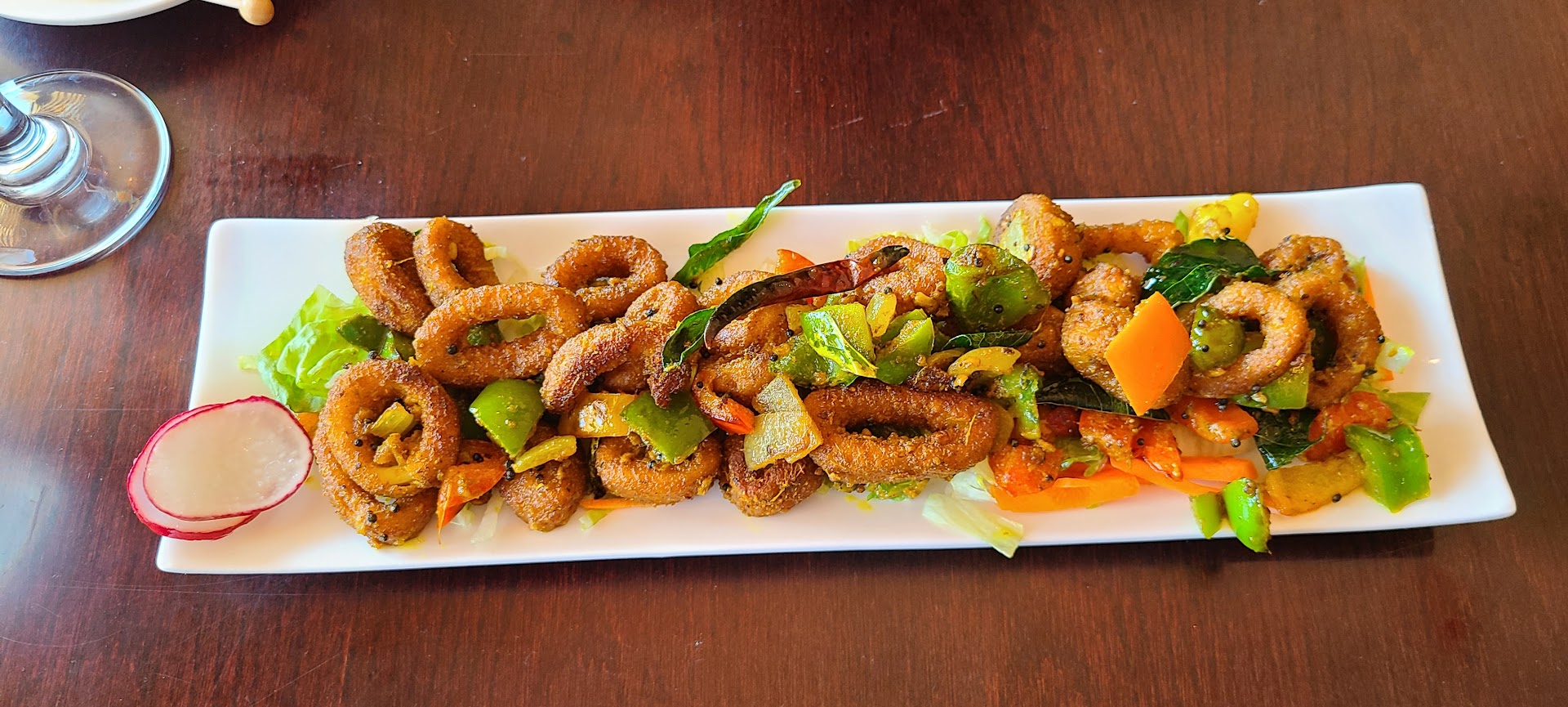 Now ...I've lived in 12 countries overseas on 4-continents and have had Indian food the world-over. Been to Bangladesh and lived in Islamabad and Kabul. Folks - this is the REAL DEAL. I knew it just by looking at the menu. The chef, "Lijoy Verghese" did his training in Gao - a town on the western shore of middle-India along the Arabian Sea. He's no stranger to seafood. I've always thought that the countries of SE Asia made the best renditions of calamari. After trying one bite of Lijoy's, Spice Calamari today, I've updated that to, "South Asia." It was fantastic ... and just when I though I'd like it really spicy - there was a perfectly roasted red/green chili pepper in the middle of it that blew my head off. Awesome! Beware - nibble it with each bite and don't forget to take a bite of the fresh lemon rind with each mouthful. Just thinking about it makes me want to go back for dinner tonight.