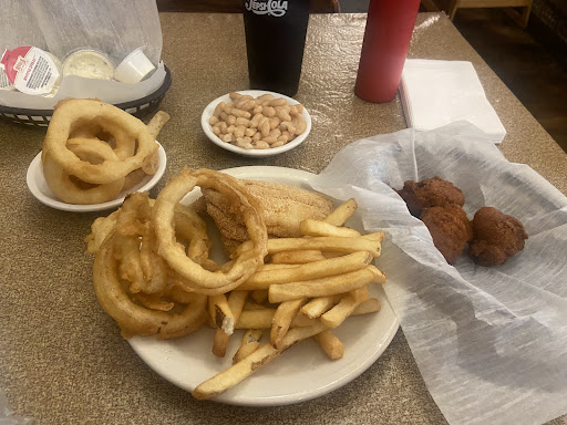 Menu with lots of choices Southern style Good catfish Homemade tartar sauce ❤️ Good hush puppies Unique good coleslaw