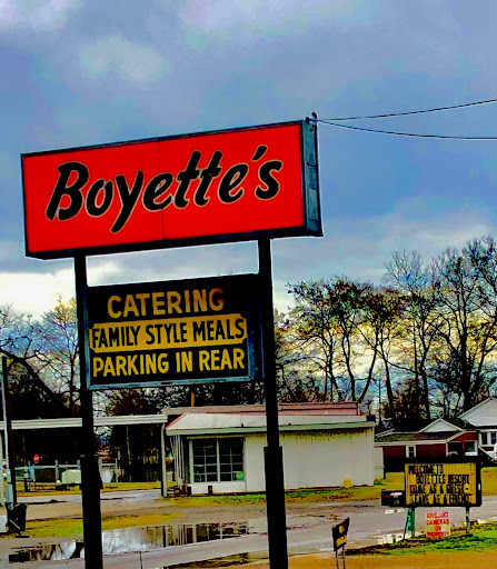 Boyette's was founded in 1921 by the late Nannie Boyette and her husband Red. It was located across the street from it's present location and seated an estimated 70 people. Today it is located across the street from the Reelfoot State Park Visitor Center and Museum and seats over 300 people. There have been several different sets of owners over the years and presently it is owned and operated by sisters Jan Boyd and Fran Hearn. They inherited the business from their parents Jack and Mary Frances Richardson, who operated the restaurant from 1968-1988.