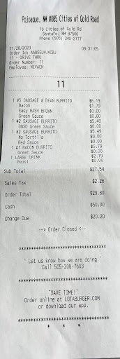 Read moreToday I went and ordered there Chicken sandwich combo, I asked for no pickle or sauce, I wanted it plain, I didn't get this. I even asked at the window to make sure. I was in a hurry, I had to be somewhere and had ordered for my grandson, whom can't have the sauce, allergic, dropped it off and left. I got home at 5 and he hadn't had anything to eat because his sandwich wasn't done right. This isn't the first time, the difference is I was in town to take it back, I wasn't this time. Yes it's my fault fir not checking, but being in a hurry and there was only one car infrount of me and none behind you would think there wouldn't be an issue. I love eating your burgers, but it gets hard to want to come back when there always seems to be an issue. My burger the last time was so salty I had to add avocado to balance it. So dissatisfied at your Pojoaque restaurant. Here it is 2 months later decided to give them a chance again. GUESS WHAT? Same problem. The girl that took my order wasn't listening, I asked for the meal, asked for plain and didn't get either. So I guess no more chances. I guess I will have to go to Espanola instead. I had to wait 10 minutes with no one in front of me, all I could see inside is them playing around. Kids will be kids, without adult...