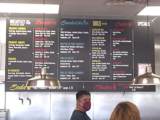 Read moreSaw a billboard on our drive from Detroit to Phoenix, wife was hungry, and you can only eat so much McDonald's. We pulled in and realized it was part of a gas station. Going in, cheerfully greeted by a woman and two men behind the counter. Took a minute to realize breakfast time had passed so I ordered from the general menu, and to go (although there's lots of seating inside and outside). Got her a laguna burger, and she liked it a lot - - much more than she expected to, and she even liked the green chilis on them, even though she found it to be spicy. For myself I got a grilled cheese sandwich on Texas toast (grilled perfectly with a solid crunch, without a hint of burnt, and plenty of cheese by not a gooey mess). I also got a hot dog without onions, which came with ketchup, mustard, and relish, on a piece of Texas toast that was grilled into hotdog bun shape and it offered a slight sweetness to it. Everything was delicious and I tolerated the 15 minute wait. While waiting, I talked a bit to the guy who was running the fryer and complimented them highly when I realized that even though they appear to be busy all day, all the equipment is extremely clean, no grease...