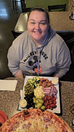 Dined in today on September 20,2025 Greeted at front door told to take a seat anywhere waitress met us at the table and asked for our drinks! Which was perfect she quickly took the rest of our order which again perfect. Here’s when it goes down hill, we ordered fried raviolis and they were honestly the worst fried ravioli I’ve ever had. All you could taste was a greasy breaded layer. No flavor whatsoever then we ordered the garlic knots They were OK subpar at the most. We also ordered a specialty pizza 1/2 being meat lovers other half being a white pizza with tomato, spinach, ricotta, and garlic on it. Specifically asked no onions on the white side of the pizza. as we are sitting there waiting for our pizza to come out, which was a longer wait, but we were OK with that because we figured we could make conversation and talk about our days instead and obnoxious customer behind us talked so loud she was practically screaming the entire time we couldn’t even hear ourselves think so then yes the weight got very annoying as all we wanted to do was get out of there. Finally, my husband and I got sick and tired of it, and I went up to the waitress and asked for our pizza to be to go. Probably five minutes later, the waitress comes out with our pizza in our Bill $55 for our meal so $10 for the fried raviolis which were horrible five dollars for the garlic knots again subpar. Then we had two sodas so on average I wanna say that was probably 20 bucks for the appetizers and drinks that leaves $35 For the pizza, we open the pizza covered in onions after we specifically asked no onions. We did let the hostess know about how we didn’t mind the wait but the obnoxious was the problem she proceeds to tell me the customer is in all the time and does the same thing. So clearly has never acknowledged the fact it’s bad...