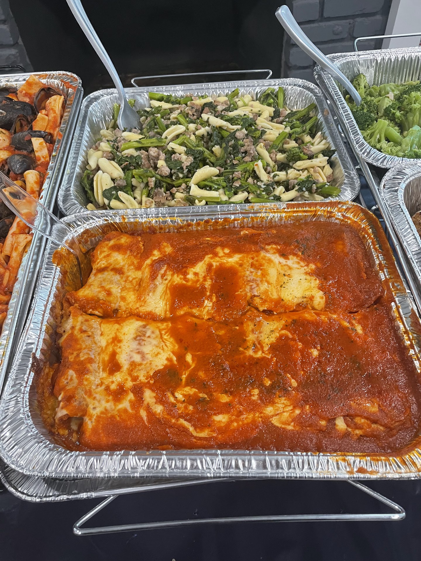 Ordered a stuffed pepper for an appetizer = very tasty, moist, and tender; ordered Penne alla Vodka for dinner = plenty of delicious pink sauce, pasta was perfectly soft, and chicken was tender; and had a glass of sweet Moscato! Our waitress was wonderful... super busy yet found a way to be attentive without being intrusive (great balance). Atmosphere was a bit loud at other tables, so I suggest playing Classical music in the background in the dining hall instead of loud, energetic music that raises the overall volume of the ambience 🙂