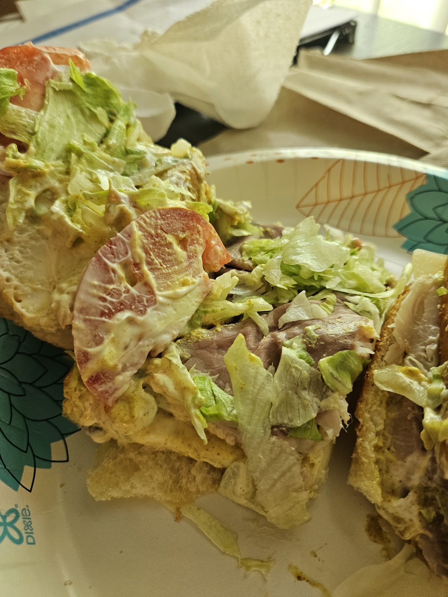 Ordered what I was expecting to be a foot long sandwich but it was more like 8 inches. The bread was dry, flaky and almost stale. I only wanted ketchup on my roast beef. No other toppings. The amount of ketchup the girl put on was so minimal. Like a few teardrops, which soaked into the bread so it was barely able to be tasted. Also, the portion of roast beef was small. You would think that if you're not filling up the sandwich with lettuce, tomato etc., etc., that they'd at least give you a little more of the main ingredient. Even though they do the same thing, I think I would have gotten more at Subway. As for the staff on duty.....no complaints other than that the radio could have been turned down some. Hard to hear when a bunch of people are in there all talking at once, trying to be heard over themselves...