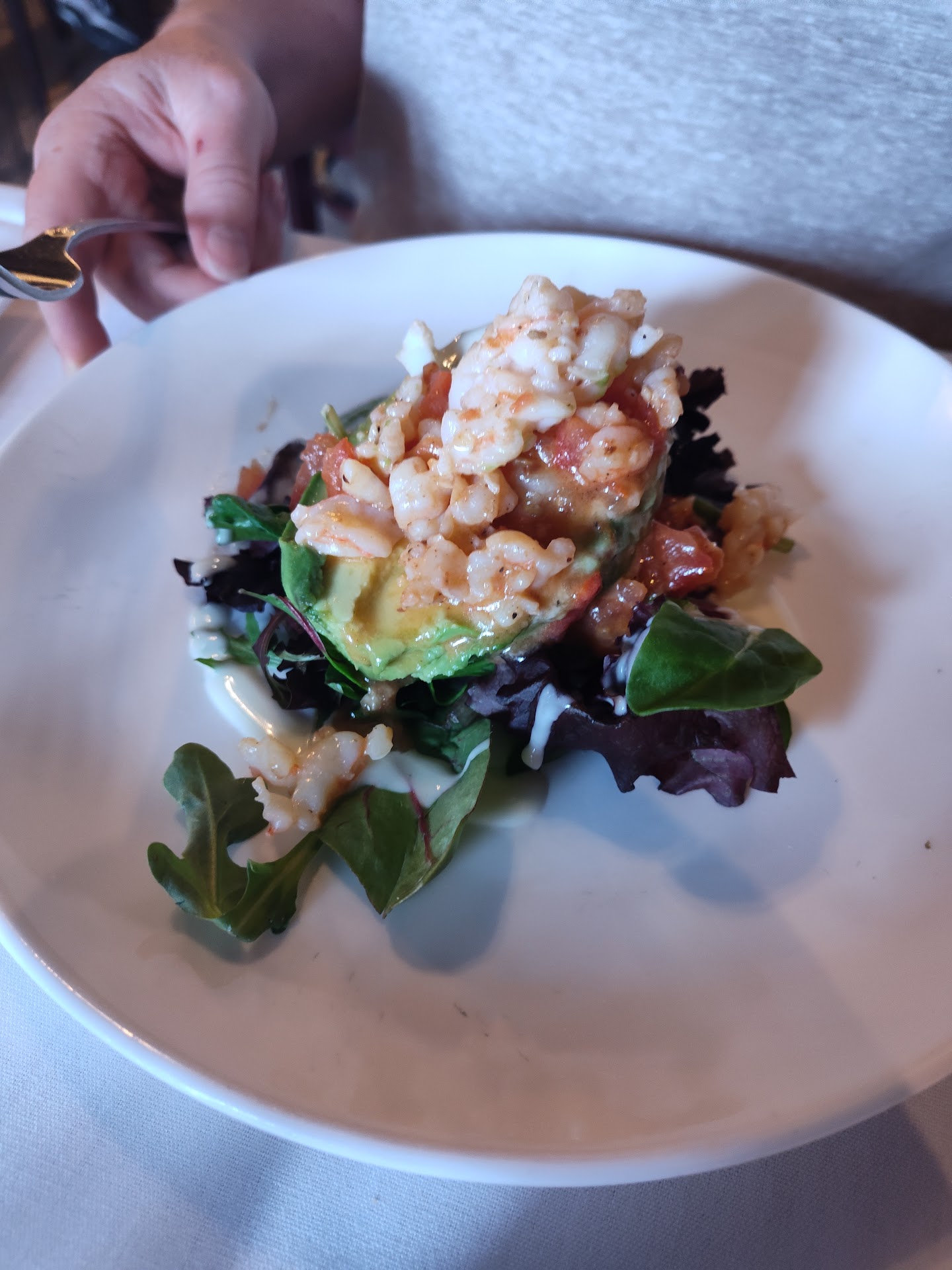 After we were seated menus were brought and the descriptions seemed pretty great. The first dish, the shrimp and avocado was a little different as the shrimp were hot and the avocado and leafy greens were cold, but it was pretty tasty so not too bad. Sadly then came the main dishes.