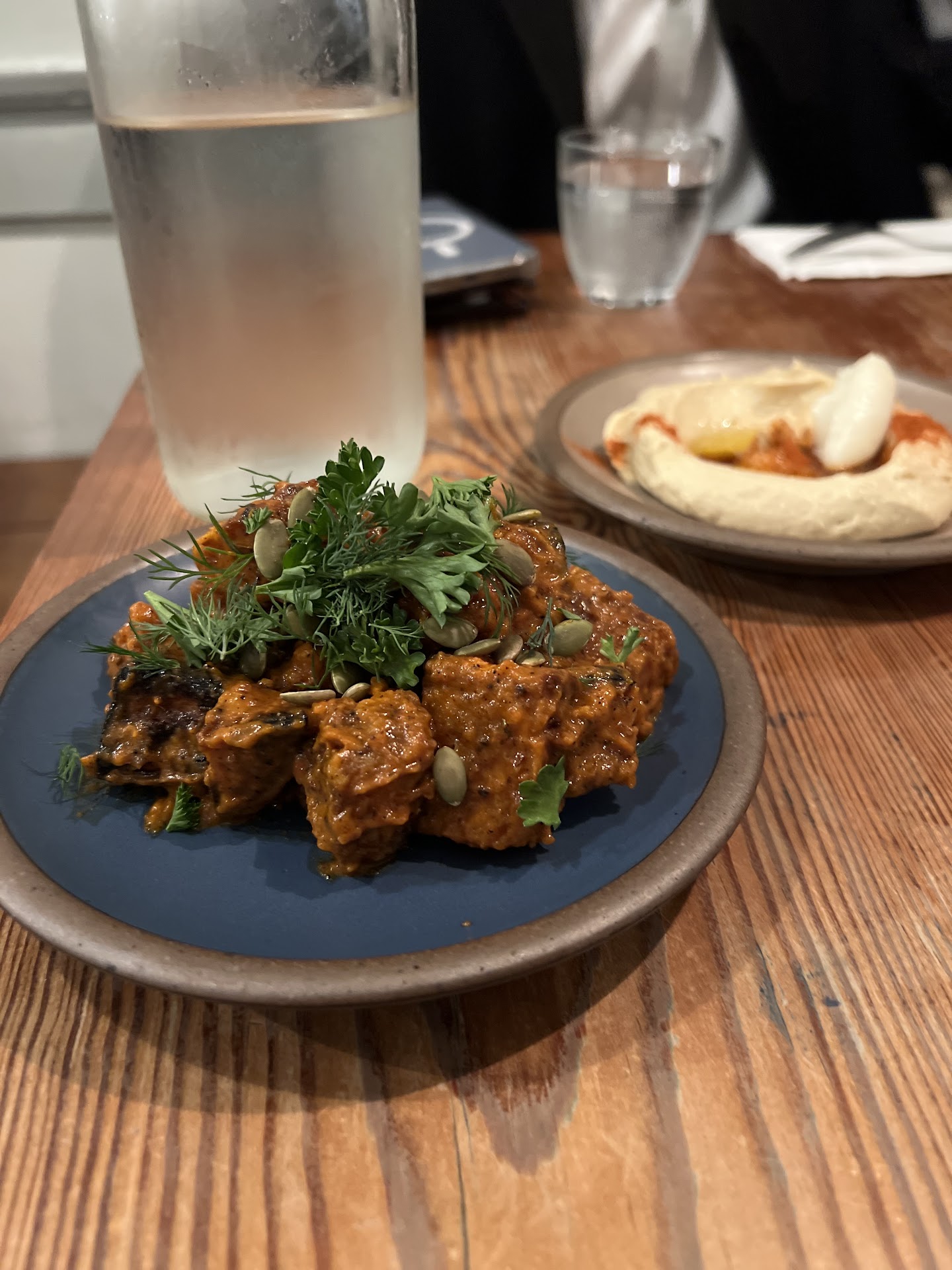 Read moreGrowing up in a middle eastern family, I am a stickler for authenticity in restaurants that serve the cuisine. Though the menu itself is nice, the food when brought to our table was very lackluster. In the falafel platter, the falafel itself was under cooked on the inside. The flavor and seasoning was ok, but the trademark falafel "crunch" was not there and it being under cooked made it taste like falafel mix. The hummus had too much tahini in it/the overall balance between the tahini, lemon, salt, chickpeas, and garlic was off, making it taste very bland. The tahini sauce for the falafel was basically just watered down tahini(?) with no seasoning whatsoever, which was extremely dissapointing, and had the same balancing issues as the hummus had. I liked the pickles and the toum, which is the only authentic tasting item on the plate. The house bread was basically an unsweetened pancake. The tabbouleh was like a reverse tabbouleh, with 90% of it being the burghul and 10% of it being the parsley/veggies. The service was fine, the restaurant itself was nice, I liked the drawer full of utensils at our seats, but if you're looking for a gentrified version of middle eastern culture, look no further. Seek...