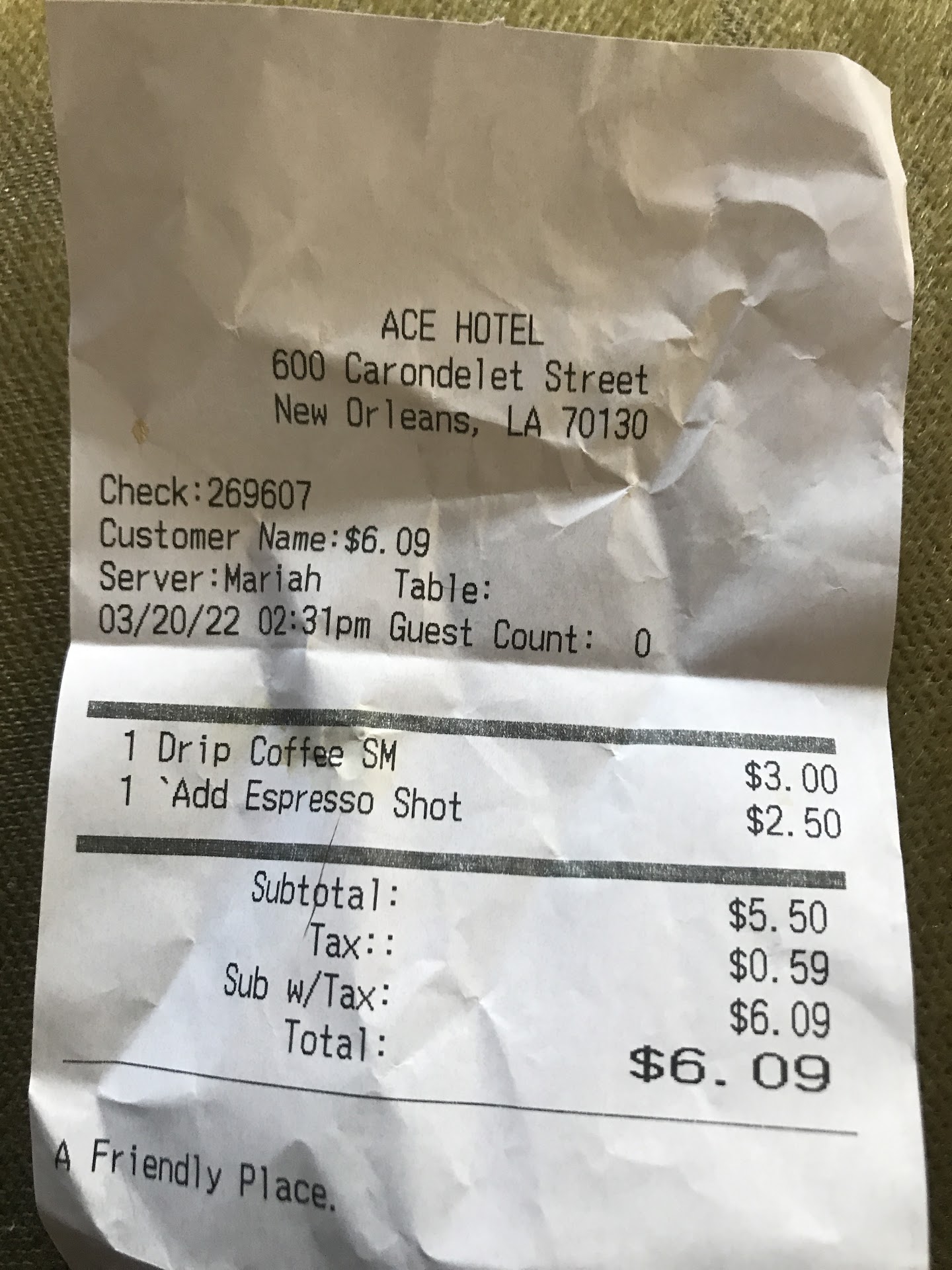 Read moreVery unpleasant staff. I was overcharged for coffee and after I realized it the server ( Mariah) told me that she cannot cancel the order ans refund me because she did not know how to do it..... and that there was no one to do it So I was fir Ed to drink a nothing special about a 6:09$ coffee. I then told her that was fine and I will take the coffee with two brown sugar. She said “ yes” After I asked where the brown sugar was she pointed with her hand to an area at the bar which has no brown sugar. So I came back to her and kindly asked her for the third time. She replied” it’s what ever on the bar I do not know if we have brown sugar or not” A 6:09$ coffee ladies and gentleman literally cold and a very rude and unhappy person sending you to hell. If you like paying this price and being disrespected then yeah the place looks nice. I just moved to nola and the neighborhood. A huge coffee amateur and I will make sure no one I know will come...