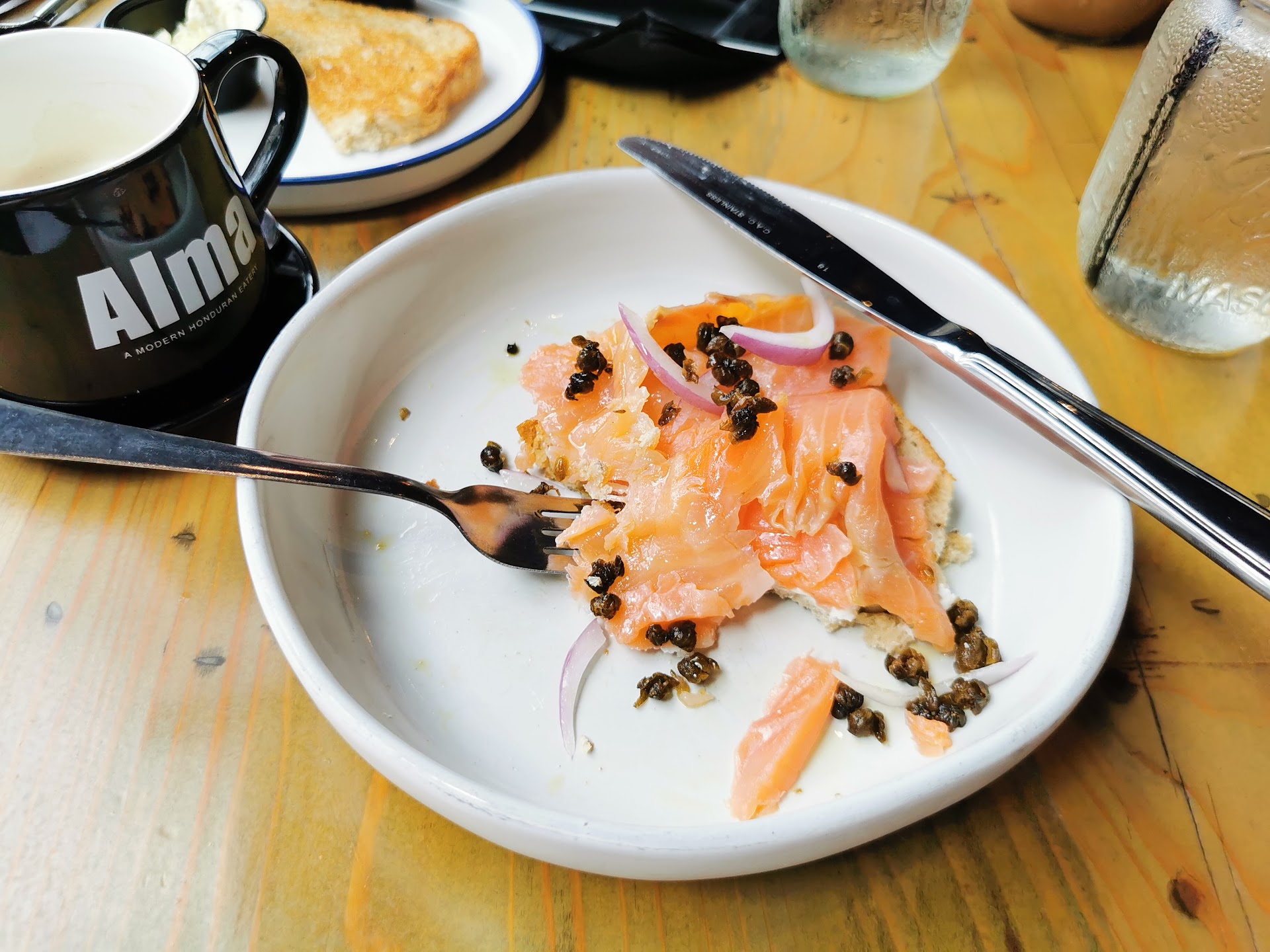 When I ordered salmon lox something something for $ 23, I expected at least a full-fledged dish, and not a basic sandwich with goat cheese and three pieces of lox from above.