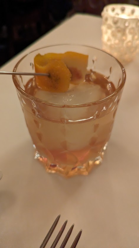 First, the drinks are too high. I am fine with charging a high price for mixed drinks, my husbands old fashion was $26. I got a shot of Blanton's bourbon. This is a good bourbon and while I understand that, there is absolutely NO REASON to charge $29 for a shot. I never go without having a bottle of Blanton's in my home. The bottle is $75. I understand there is a mark up on liquor. I worked in the restaurant industry for 10 years but 2 shots should not cover the cost of the bottle. This in itself was ridiculous.