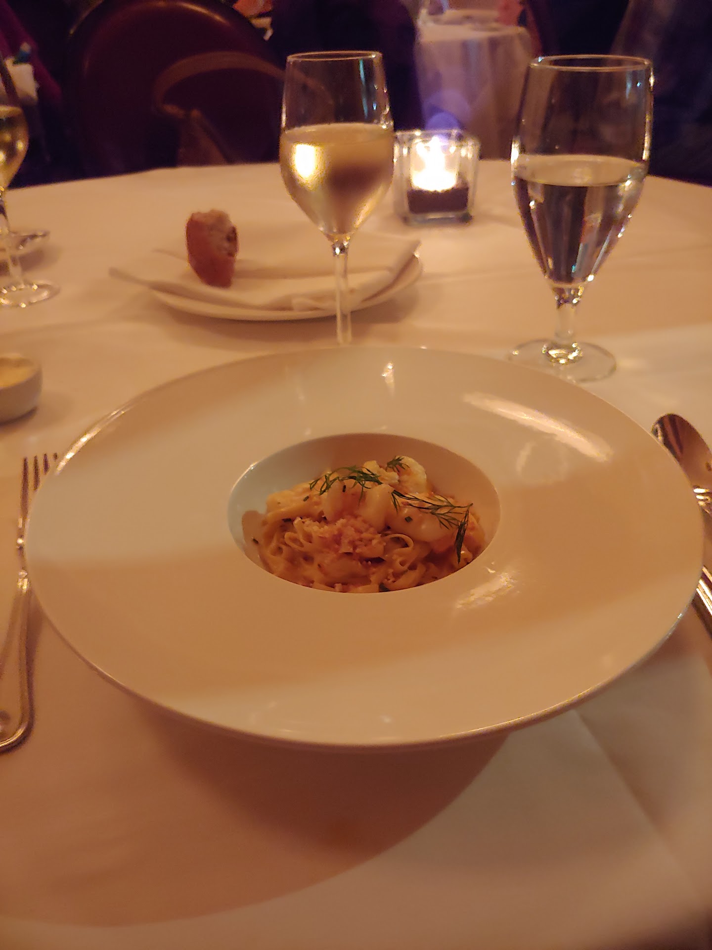 One positive thing, for our anniversary the pastry chef sent out Bailey's Cream Truffles and pralines on a plate that said Happy Anniversary. I was honestly extremely pleased with the desserts. They were absolutely delicious. I almost regretted not ordering a dessert. Their pastry chef is truly talented, unfortunately not enough to make me want to ever return.