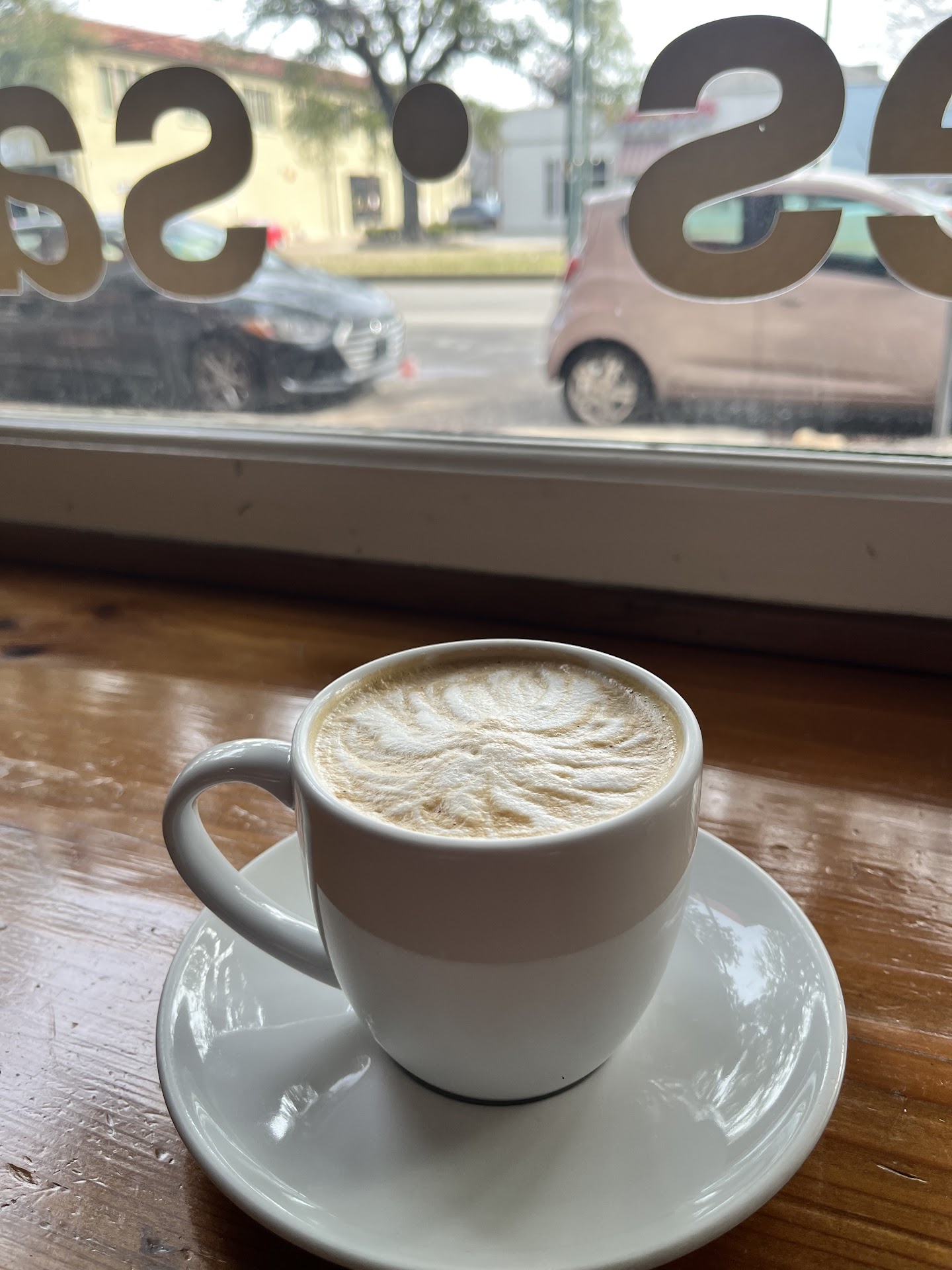 Great cafe, great food, great service and perfect location for people watching on St Charles. Everything is very fresh with vegan/vegetarian options. They serve a variety of sandwiches, salads, fresh-squeezed juices, pastries, fresh fruit, mimosas, blood Mary’s, irish coffees and amazing coffee! (amongst many other options) My personal favorite is the caprese sandwich and I add bacon for a bit more protein paired with a caramel oat milk latte and for dessert one the BEST muffins ever (They offer chocolate and blueberry) The baristas working are warm and welcoming and can easily accommodate for allergies and gluten/dairy intolerances. They offer oat and almond milk for nondairy. The best local coffee and pastries on this side of town. They sell t-shirts, tote bags and whole bags of coffee. There are even free stickers by the register! Everything at this cafe is super organized and curated for the guests use. (One of the cleanest public bathrooms ever on this side of town) The service counter has many sugar options and milks available for “dressing” your coffee as you like it. Also was very glad to see that this business recycles and composts, it is very eco-friendly business! This cafe is very well managed!! The atmosphere is here is wonderful, you can meet up with friends, come and sit and work on school work etc. There is plenty of space for accommodating larger groups as well! This cafe is right next to a streetcar stop and many hotels for convenience. I love this cafe 10/10- you have to stop by here if you find yourself on St...
