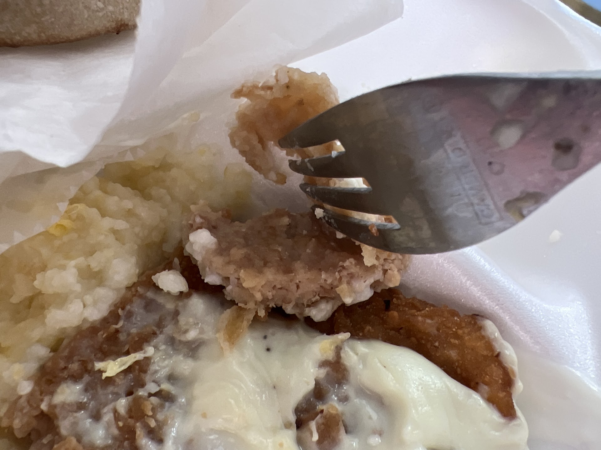 I ordered on Uber eats, so this review is not from inside the restaurant itself. However, it IS about the food. I ordered enough so I would have breakfast and something to eat for dinner. Mistake. Biscuits and gravy - my biscuits definitely tasted like it had been left out overnight and was so dried out my gravy would not even absorb. I don’t throw food away, but that definitely went in the trash. It was more like a thin scone or something. Chicken fried steak with scrambled eggs and grits - I don’t know what kind of meat was in the chicken fried steak because it was gray. I still managed to eat about a quarter of it before giving up. Eggs and grits were fine after salt and butter. English muffin – it was burnt and also soggy. Not even sure how you accomplish that. Also seems like it is wheat and tasted very chemically. I didn’t even swallow the bite I took. Corned beef hash – I love corned beef hash. Now, this did taste like corn beef hash. Which is fine, I ate it. The problem here was I probably got 4 ounces for $7.50. Since I ordered it as a side, I expected them to at least fill up a portion of the side square foam containers. Just look at the picture. Unfortunately, this is what I opened first and immediately went to Uber eats to report it and get my money back. After opening all the other items, I should’ve got a refund for the full meal. Absolutely terrible. I normally would not write a review, unless it’s really bad, because I know some restaurants have bad days, but Jesus Christ! This is an...