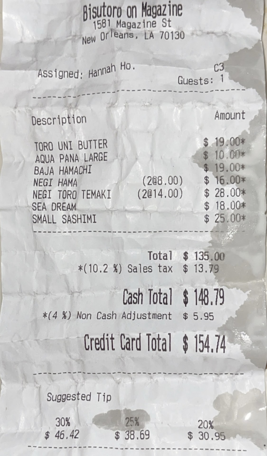 Read moreOur first meal upon arrival to New Orleans. One of the best sushi experiences I've had to date. Everything is prepared and presented perfectly and the overall seasoning balance is exceptional. We pushed the tamari dish away after the first bite because it's not needed. Each piece was put together to a t. We ordered a selection of our favorites. The uni was spot on but my favorite was an otoro nigiri with the added truffle pate and sturgeon caviar. I don't think I've had a single bite of sushi better than this one bite. A side of hot sake brought everything to a peak. The bird feeder maki was a revelation. It evolved as it dissolved in your mouth. The bar has been set very high for the rest of our visit. Please come enjoy this place. You won't be...