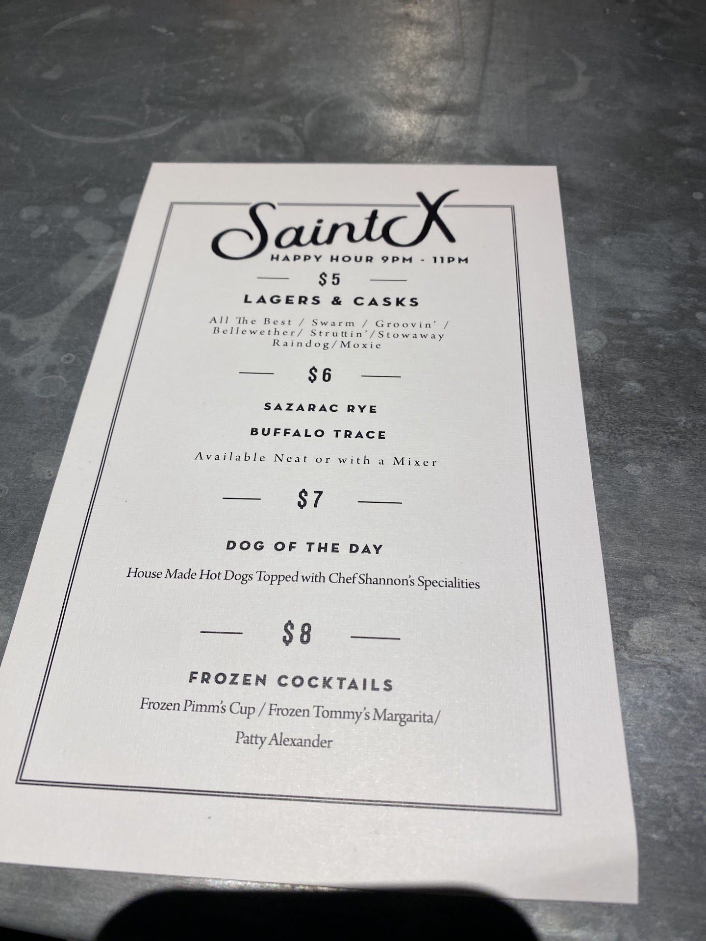 Read moreI typically don’t review places but hopefully this will help them improve and learn from issues. I have been to Saint X a few times and have had great experiences. Unfortunately, today, was not one of them. I made a reservation for 7 a week ago or so and when we arrived at the restaurant at the reservation time the hostess told us it would just be a few minutes until they printed out new menus (not sure why we couldn’t be seated then they bring us the menus). After 15 minutes of not being seated we told her we were going to sit at the bar until our table was ready. Another 20 minutes past before we were seated. We never had a server come until we asked the bar if we could place an order and the bartender came and took our order - only for drinks she said she couldn’t take food orders (???). More employees showed up and we still had to ask if we could have a server to order food - when we did order food the order was incorrect. Also, the pimento cheese was supposed to be served with fried saltines and we got regular wheat ritz?? Ordered one turkey sandwich it was never put in to the kitchen then they came out with two saying that’s what we ordered when we asked where it was (the waitress didn’t write down our order when she took it). It was honestly just a disaster and the place was super unorganized. We decided instead of getting more drinks that we would go down to Walk Ons instead. Really let down by...
