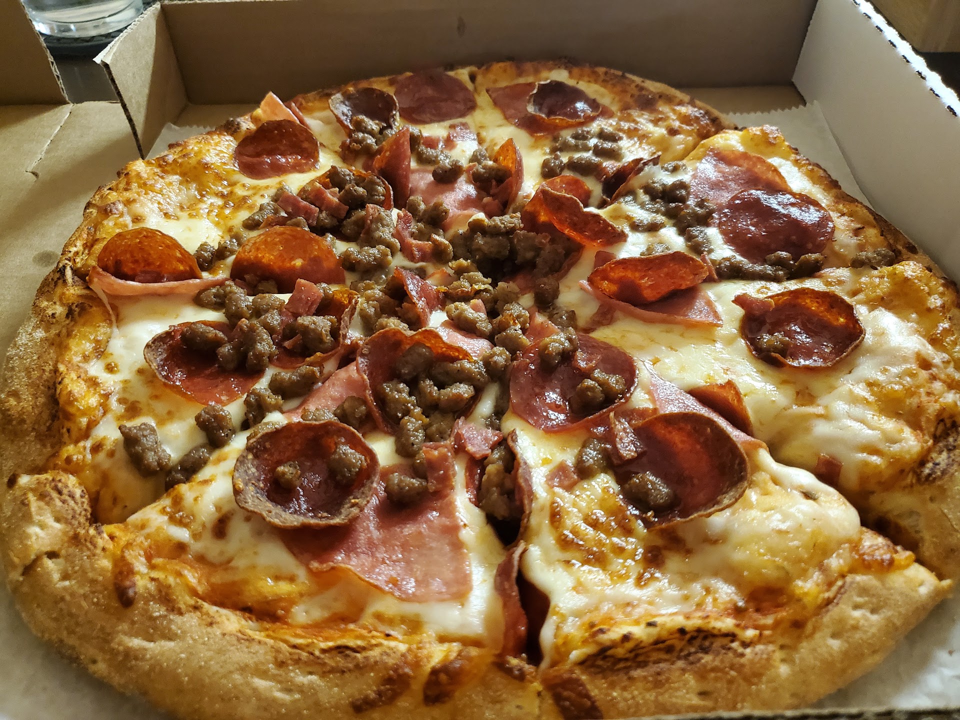 I think my pizza was carried sideways, all of the cheese and toppings were on one side. The crust was very much like cardboard and I don’t think they use real cheese, it had an odd consistency. I ordered 2 pieces of cheesecake so I could get to the minimum for delivery, I got 2 different types of cheesecake, one was very good, looked homemade and was quite delicious, the other looked like it came out of a box of frozen cheesecake from the grocery store, it was disgusting, strange texture and flavor. As with the pizza, both cheesecake containers were delivered on their sides, what’s up with that? I don’t think I’ll ever be desperate enough to order from this...
