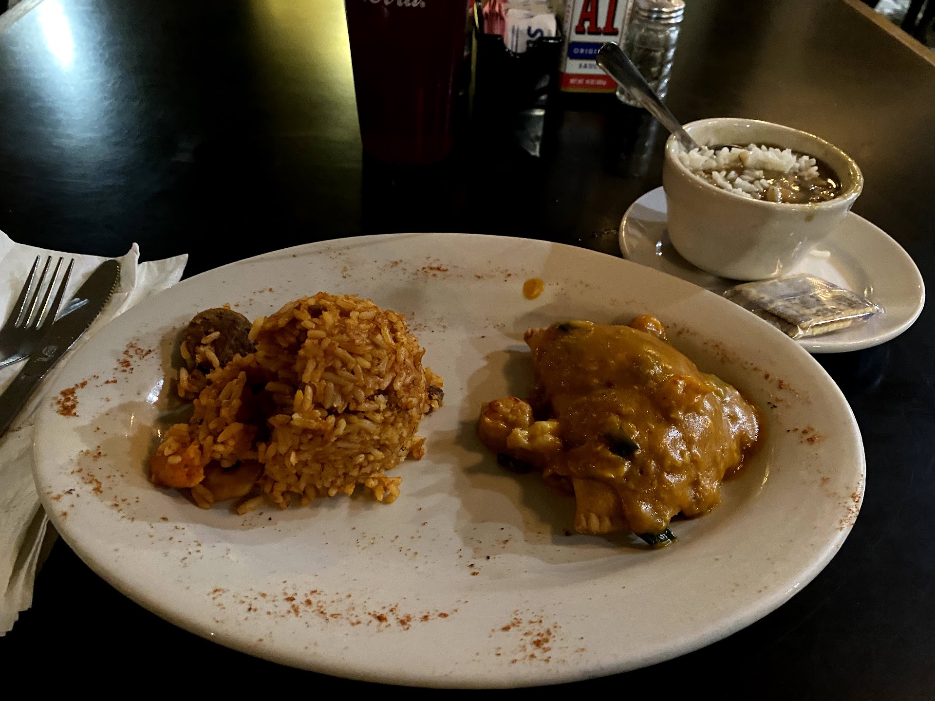 For context, this was my 20th or so meal in NOLA, and I'd been moving through a checklist of beloved eateries and regional dishes recommended to me by locals (gator on a stick, muffuletta, shrimp and grits, gumbo, fried oyster po' boy, dirty rice, boudin, fried green tomatoes, beignets, bananas foster, pralines, etc.), so my dinner at Cafe Pontalba was coming on the heels of plenty of excellent dining...