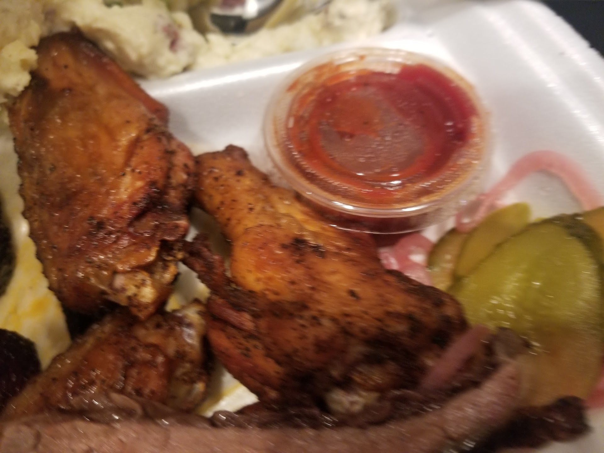 The ribs were amazing and had tons of smoke. They were the only ribs I have bought that can keep up with what I make at home for myself.