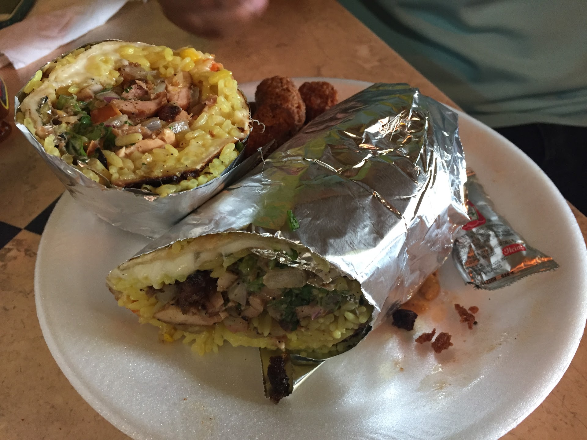The food was delicious and well spiced - we got the chicken jerky with rice and salad and the chicken wrap. We asked for the extra spicy version. It was prepared right in front of us and was fresh.To say that this meal was delicious would be an understatement. So lost were we in the delicious food that for a couple of minutes, we just sat quietly, eating and enjoying our meal. We also got the sugarcane juice to which they added mint and lemon - a nice touch for that humid day.