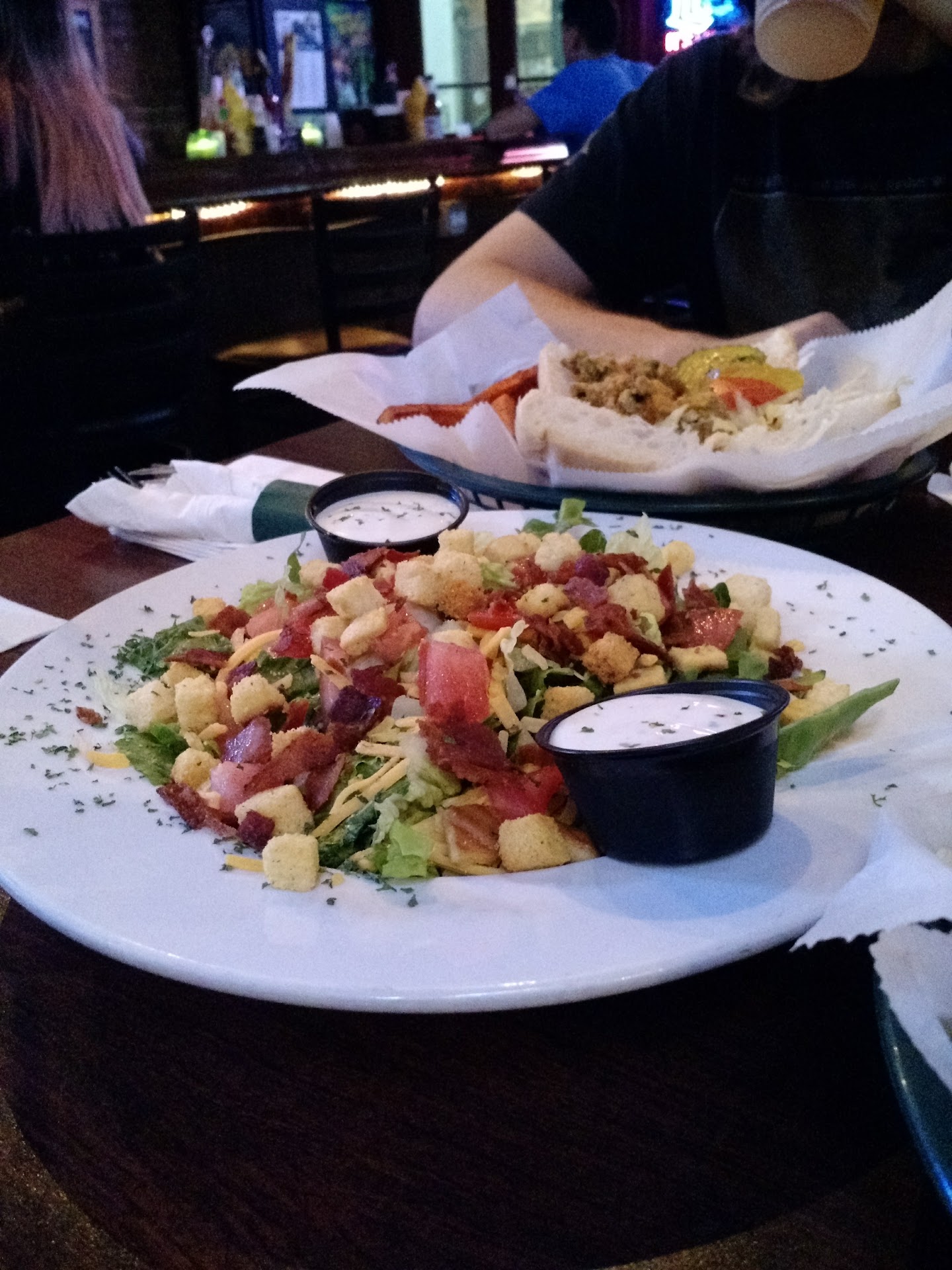 Read moreTo be fair, Halloween night just off of Bourbon is never a good time to judge a place, so let me just get that disclaimer out of the way. That said, the mixed drinks looked good, and the service was pretty decent. There were some NOLA classics on the menu and my companions enjoyed their shrimp poboy and crawfish poppers. I got the grilled cheese... Which you wouldn't think would offer the opportunity to be judged and yet, here I am judging it: there is no reason for a grilled cheese to be a triple decker sandwich. If you want to fancy up a grilled cheese, you can change up the type of bread or cheese. You can have optional toppings. You can throw in some aioli or other sauces. It just didn't really work, but that being said, it was still pretty ok. The tater tots were yummy and well seasoned. My other kinda gripe was that they have a courtyard but it was not in use; not sure if it was just because of the madness or what, but I always prefer to be outside...