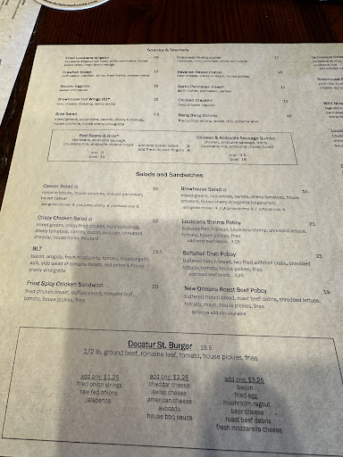 Table for 2 for Lunch I had this place in mind for our 1st stop in New Orleans, so we took a quick 15-minute walk over from our hotel. We entered without a reservation, and were able to get a table for two for lunch. When asked if we preferred indoor or outdoor seating, we chose inside, it was a little too warm for Wifey this time around. š They led us to a perfect high-top table just behind the bar, and our server, Kristen T, greeted us right away with menus. All the beers offered are brewed in house. I ordered a flight, while Wifey went with the Weiss. The beers arrived quickly, and we decided to add a couple of appetizers; I opted for the hot wings and Wifey ordered the bang bang shrimp. The wings came with a sweet and spicy sauce that Kristen told me was not that hot, it ended up being a good choice. Kristen mentioned she was new, but we couldnāt tell. She was friendly, attentive, and made us feel well taken care of. The flight was excellent, and my surprise favorite was a Vienna-style pilsner called the Red Stallion. From where we sat, I only noticed one small TV, so itās probably not the spot to catch a game. Thereās also an upstairs area, which our server said is often booked for parties. She also pointed out that the space almost doubles as a museum, with artwork displayed on the walls and most of it available for purchase. While we were there, a live band started playing, which added another highlight to the experience. I went upstairs to check it out and found a huge interior dining area and a balcony overlooking Decatur Street. Thatās definitely where Iāll plan to sit next time. Overall, it was such a great setup that I found myself thinking, I could have stayed...