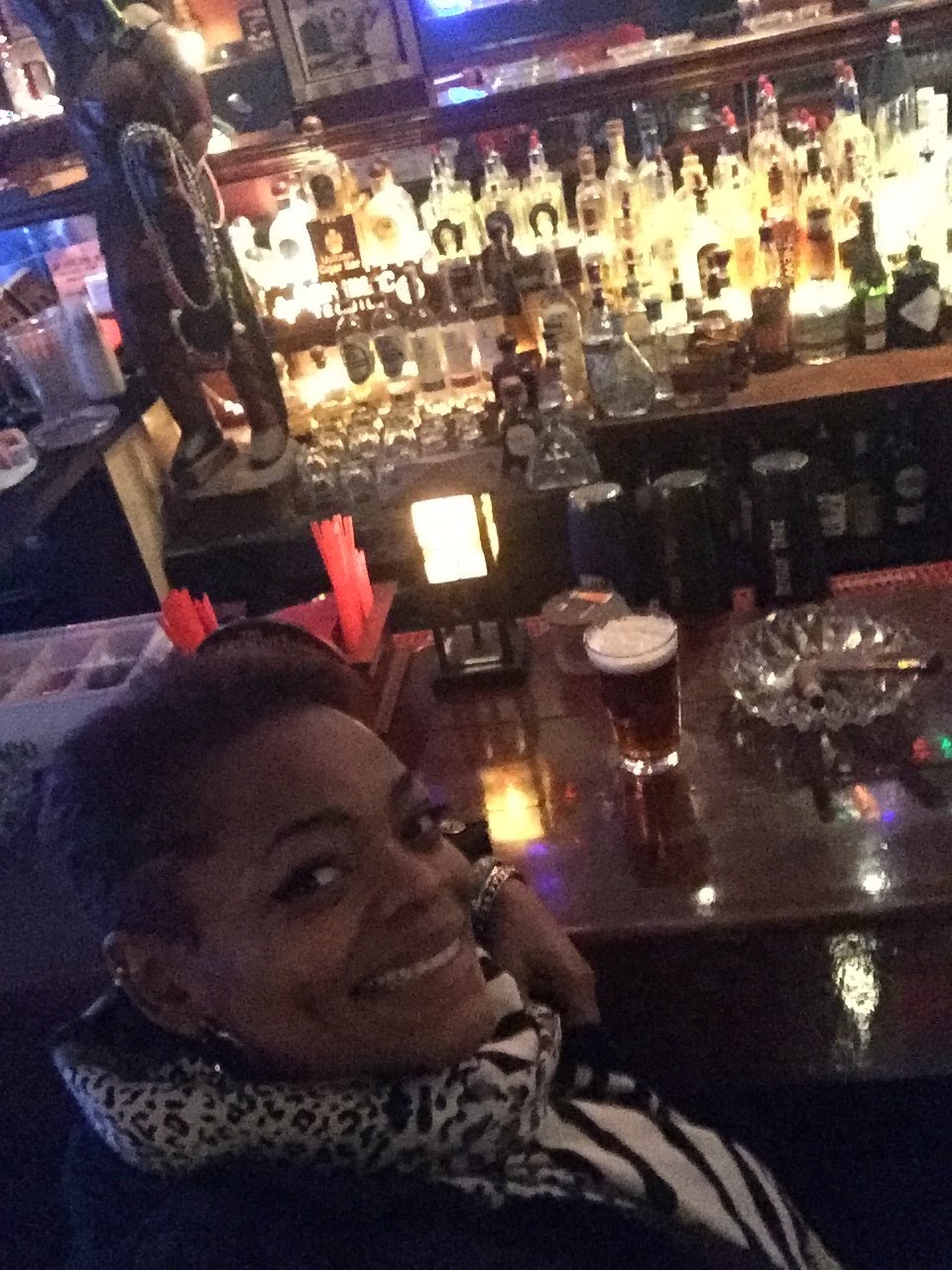 Arriving was cool; not too many stares as we entered, stranger danger... Lol. I made my way to the cigar case for selection. When I decided, I elicited the assistance of John, the vest & pageboy clad bartender, for purchase. He clipped them and allowed us to use his lighter to get the party started. The price range on cigars was cool & affordable.
