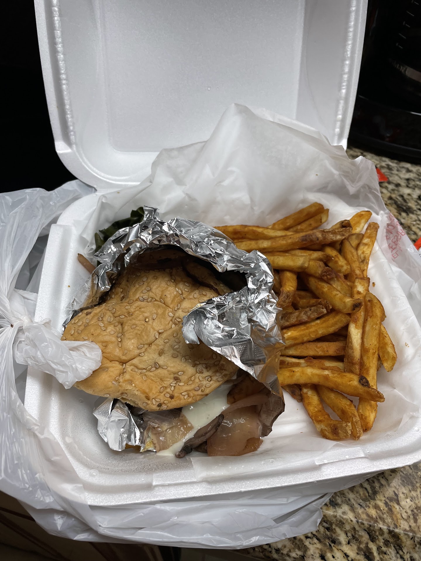 I stayed, since my food would be done soon anyway. I had my phone out leaving an angry Facebook comment, then she physically threw me out. She pushed me into a bunch of chairs, which I fell over. Then, outside already heading to my car, she struck me in the back of the head.