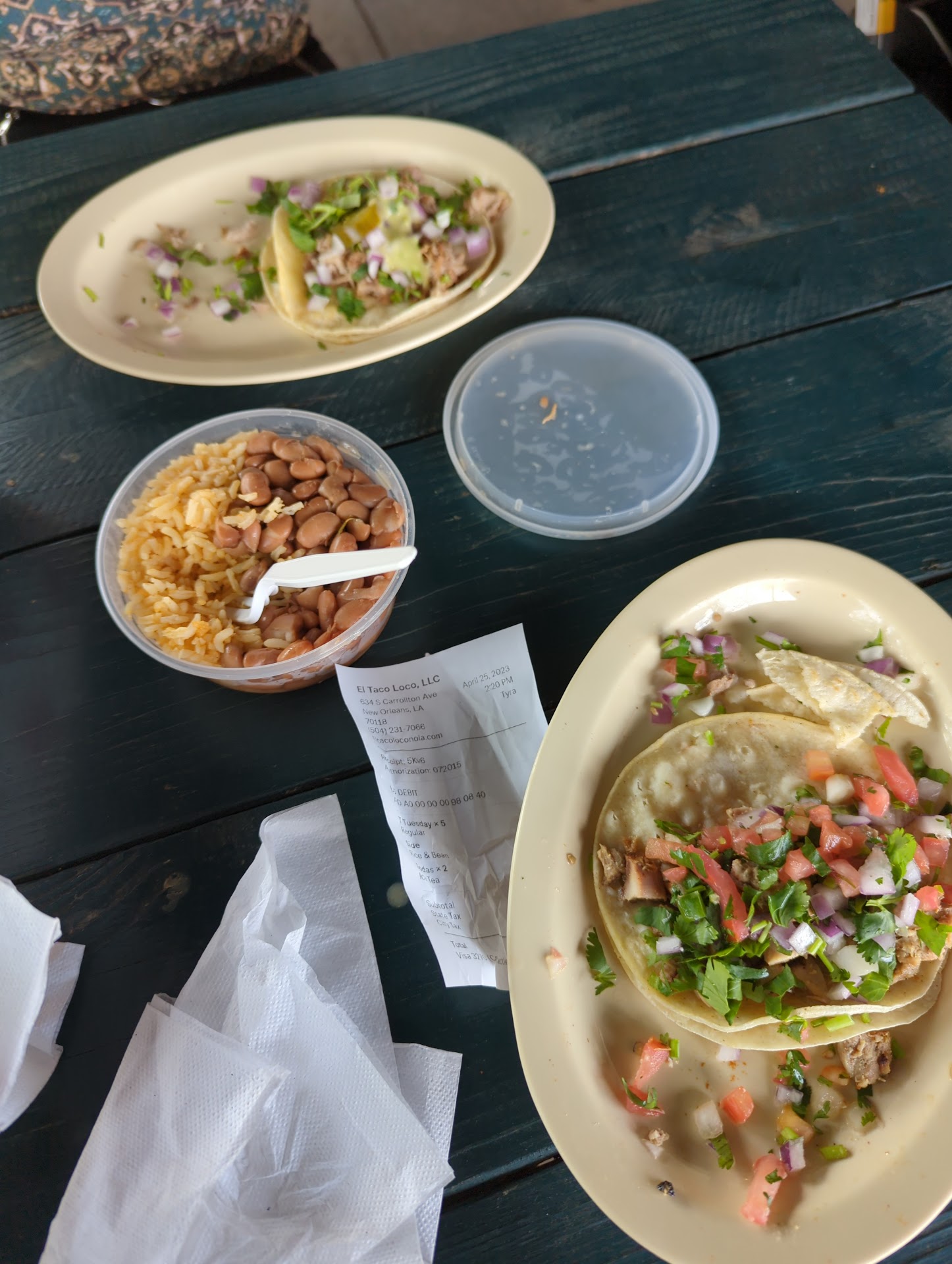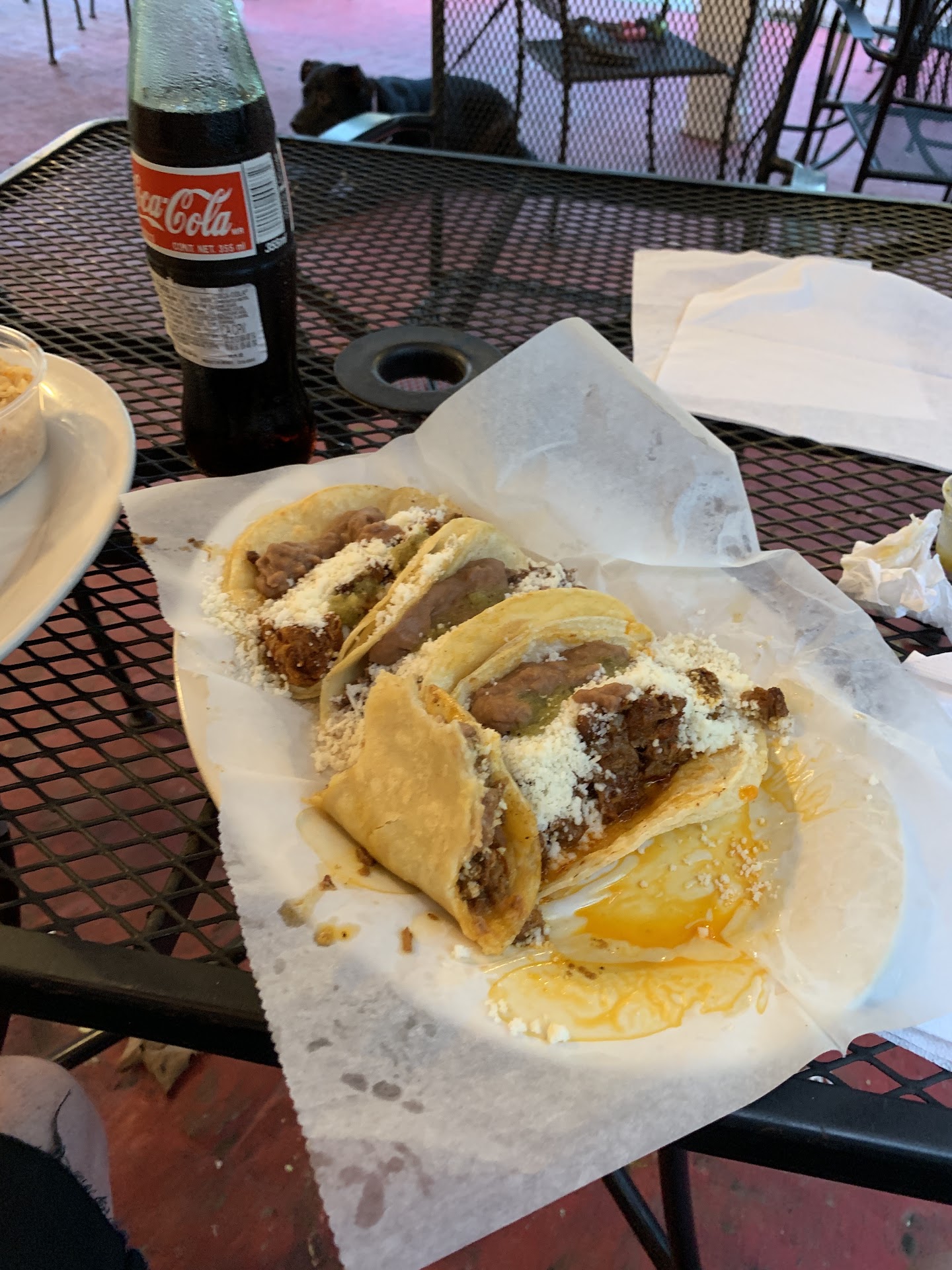 tacos tasted ok - not great, but edible. chips were fresh. salsa and queso tasted old. rice and beans were ok. tamale was very dry, and was reheated in the microwave.