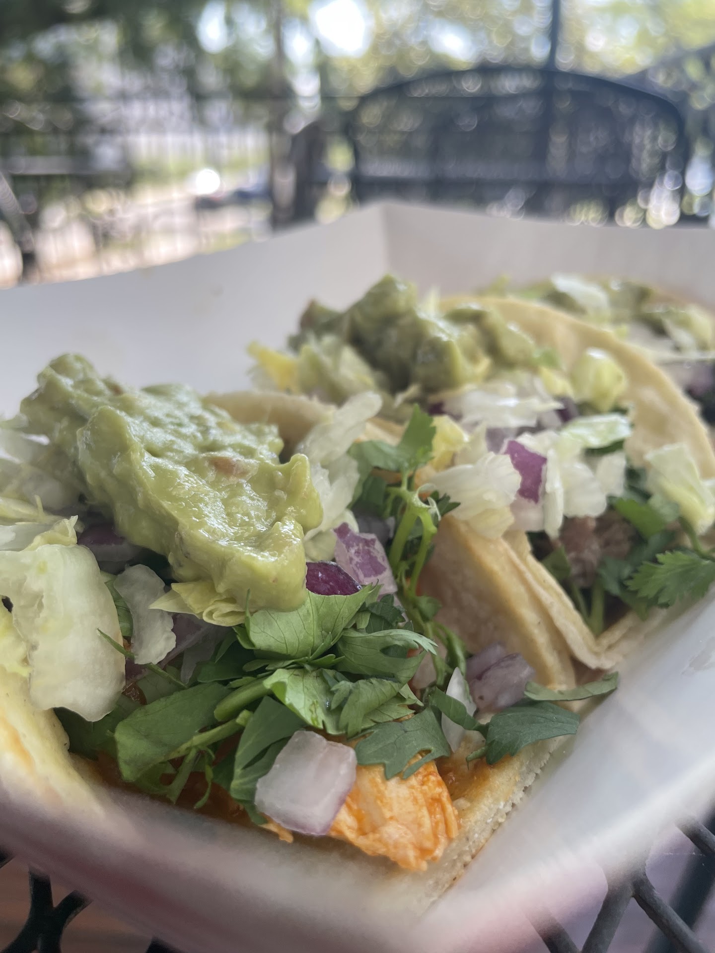 The food is served Chipotle-style behind a glass which really speeds things up. The spicy chicken taco with my own array of toppings tasted the best to me. Tortillas are perfectly browned, well filled. I love Mexican street food so it’s a win for me!
