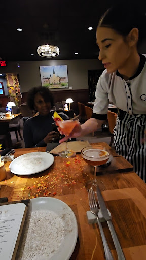 Ok, let's talk food. Our "dining guide," yes, dining guide, not just a server, was Kiera. To say Kiera had energy and great knowledge of the menu is an understatement. We instantly felt comfortable enough with her to allow her to guide us through the dining experience. Kiera took the time to explain the pros and cons of each menu item. She set expectations that most entrees are enough to share. But no, we didn't trust that part. And boy, were we wrong. I usually ask, what's the favorite house specialty drink. Kiera made excellent suggestions for my wife and I. The drinks were so good, I didn't remember the names. Sorry! We had the Crabcake for our appetizer. It didn't disappoint. We expected it to just be dropped off at our table. But nope, Kiera delivered the dish, then she explained how it was prepared as she divided it, then served it to our plates. Next was the GAIA Exotic Salad. This salad could have fed four people. It was full of flavor. The dates, walnuts, strawberries, and various other fruits tantalize our taste buds. The salad could've been our meal. But nope, there was still the Truffle fries, Lobster Mac & Cheese, Filet Mignon and Butcher's Delight sliced tenderloin soon came out. The filet was sliced at the table. The butcher allowed my wife to inspect and taste it to ensure the cut met her expectations. The filet itself was enough to share. The Truffle fries were perfect. The Lobster Mac & Cheese were a bit salty for my taste. But that didn't stop me from enjoying the dish. My tenderloin was juicy and flavorful. Everything we ordered was sharable. Kiera was right again. Of course, we couldn't finish all that great food in one sitting.