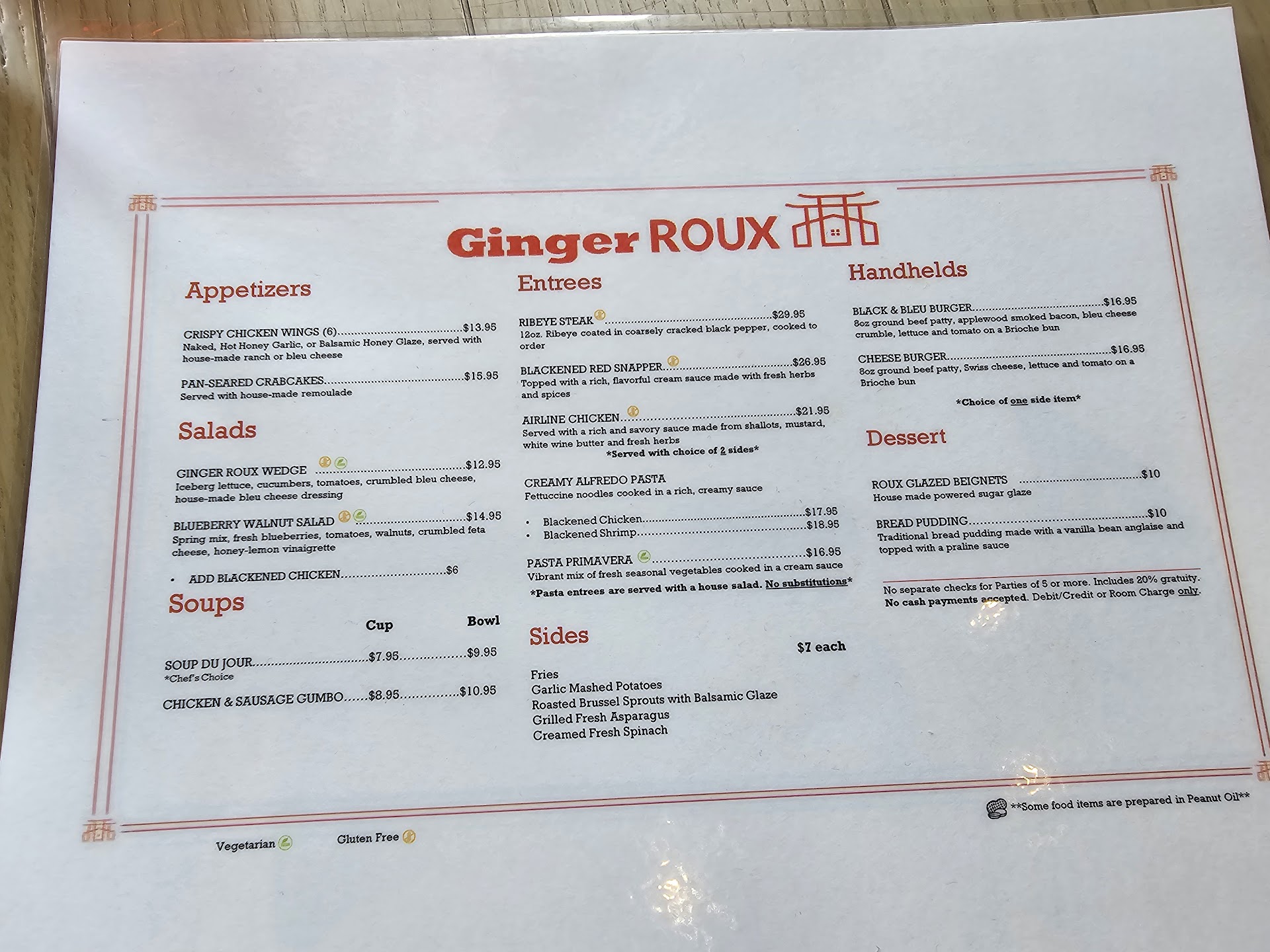 Where to begin? First of all, the previous menus posted here that showed great Asian fusion cuisine are outdated. This is there current menu. Just basic burgers and wings.