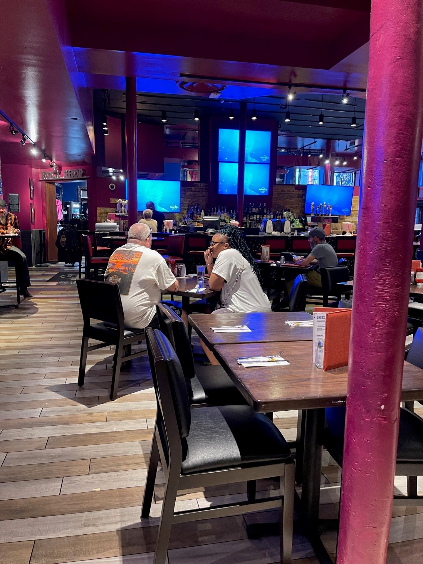 My family and I decided to eat here last night for a bit of a late night dinner. We are staying at the Courtyard Marriott, and Hard Rock is a short walk down the street. We've eaten at Hard Rock Cafes before, including this location, and always have a good experience. Last night was not a good experience. The food was ok, but the service was absolutely awful. Our waitress took forever to greet us and when she finally did, she told us the drink menu was on the table and she'd come back. She passed our table 3 times and never came back to take our drink order. When she finally did come back, she was very sporadic and it felt like she was rushing us. Mind you, the restaurant was not busy at all and there were other servers taking care of the other tables. She only had our table and one other table. Once our drink order was taken, she took forever to come back with the drinks. We had to ask for straws. Not once did she ask if we wanted refills nor did she bring refills for the remainder of the night. Someone else brought the food out and when she came by the table, she said "Oh great, they brought you your food" and then quickly left the table. She never asked us how the food was or if we needed anything. She also never brought us the napkins we asked for. When it was time to settle the checks, without asking us, she brought one check. My husband and I were dining with my adult sisters. We politely asked if it were possible to split the check, and this is when the night really went sour. She caught the worst attitude with us over having to split the check and then very rudely asked each of us what we ordered so she could split it. The entire time she was shaking her head and making a face like we were creating the biggest burden for her. We are from Lafayette. We come to New Orleans quite frequently, and we eat out pretty often. This was one of the worst experiences at a restaurant we've had in a long time. Most of us have been servers before as well, so we like to give people grace and believe in tipping well when we dined out. I bet rarely complain or leave a review, but there was absolutely no excuse for the service we received. There are too many restaurants in New Orleans. I do not see us returning to the...
