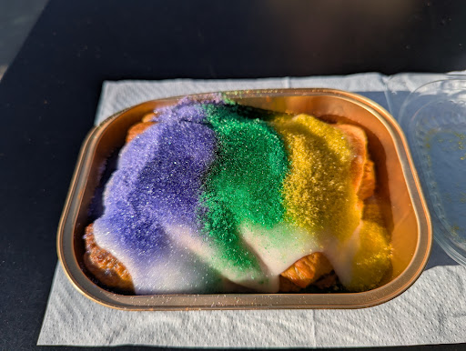 King cake: It was basically just a stale cinnamon roll with way too much frosting on top. I wouldn't recommend it.