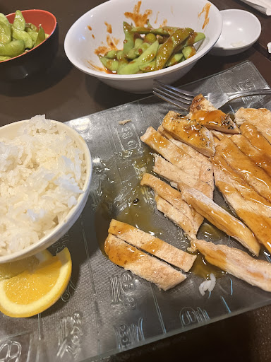 Salad comes out and it’s just iceberg lettuce and a runny ginger dressing. Miso comes out and it’s not only room temp but completely bland. Literally tasted like water. Spicy edamame comes out with no salt but a drizzle of a brown sauce that tasted foul. Sashimi appetizer comes out on the same iceberg lettuce the “salad” was made of and did not look fresh. Then my chicken teriyaki comes out and aside from not getting the spring roll it was supposed to come with, the fork was dirty and the dish itself smells like dish water. Gross. The rice smelled off. The chicken was plain, dry, and bland and the teriyaki sauce neither looked nor tasted anything like teriyaki. And typically when I’ve order this dish at a place with hibachi, it’s hibachi cooked. This was mass prepared with sauce drizzled. I should’ve followed my first mind and gone to Royal Sushi on Royal/Touro. One of the best sushi spots...