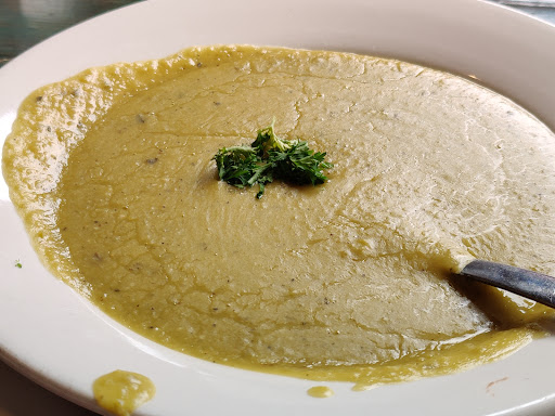 If you are in New Orleans and you do not go to Joe K's, y'all r missin one of the most important culinary experiences of your life. Period. I was in New Orleans for a couple of days and I am glad I could make it to this wonderful place. I had watched some great reviews of this place on YouTube and read some online and all of them were right. They open at 11am and the tables get occupied pretty soon. The place is well lit with big windows and the ambience is just right. They have a bar at one corner and the kitchen is visible from the tables. They have a bigger space indoors for larger groups of diners. We ordered the daily special, the split pea soup, the regular house gumbo and an eggplant napolean.