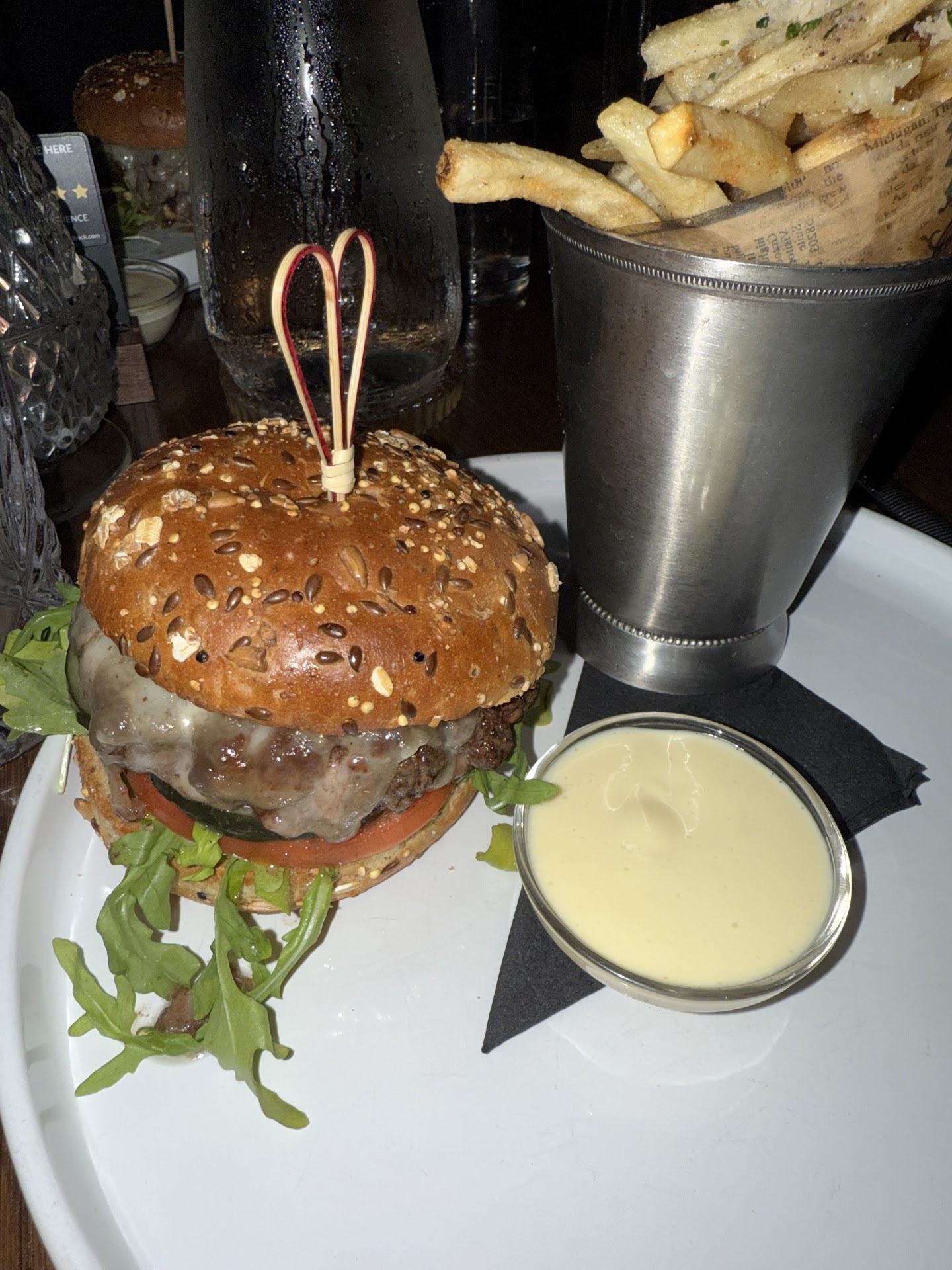 We interpreted this to mean that they wanted us to order an entrée if we wanted fries. We decided to try their burger and their duck poutine, both of which were accompanied with fries to the side. I will say the burger was it was very good, but the duck was frankly terrible and the fries were relatively generic.