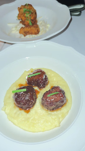 We started off by ordering dirty martinis. 15 minutes later our server came back and said they were actually out of olive juice. That was strange to me because they have olives as a starter on their menu but I ended up ordering a lemon drop. The cocktail glasses are tiny and my drink wasn’t even full nor was there any rim. For food we started with the tuna crudo, fried oysters and duck & bacon crepinettes. All 3 were great! I asked for salt and pepper and I was brought out 2 condiment containers instead of a shaker. For entrees my friend ordered the lamb gnocchi and 3 of us ordered hangar steaks. I ordered medium for my temperature and the server said they recommend medium rare and can’t guarantee the quality if we don’t get that temperature. I have literally never heard that in all my life of eating steak. Anyway, the steak was fine but I wasn’t aware it would be drowned in sauce. I didn’t care for the sauce at all. The manager, LB, was very kind and a perfect example of how management should address customer concerns.