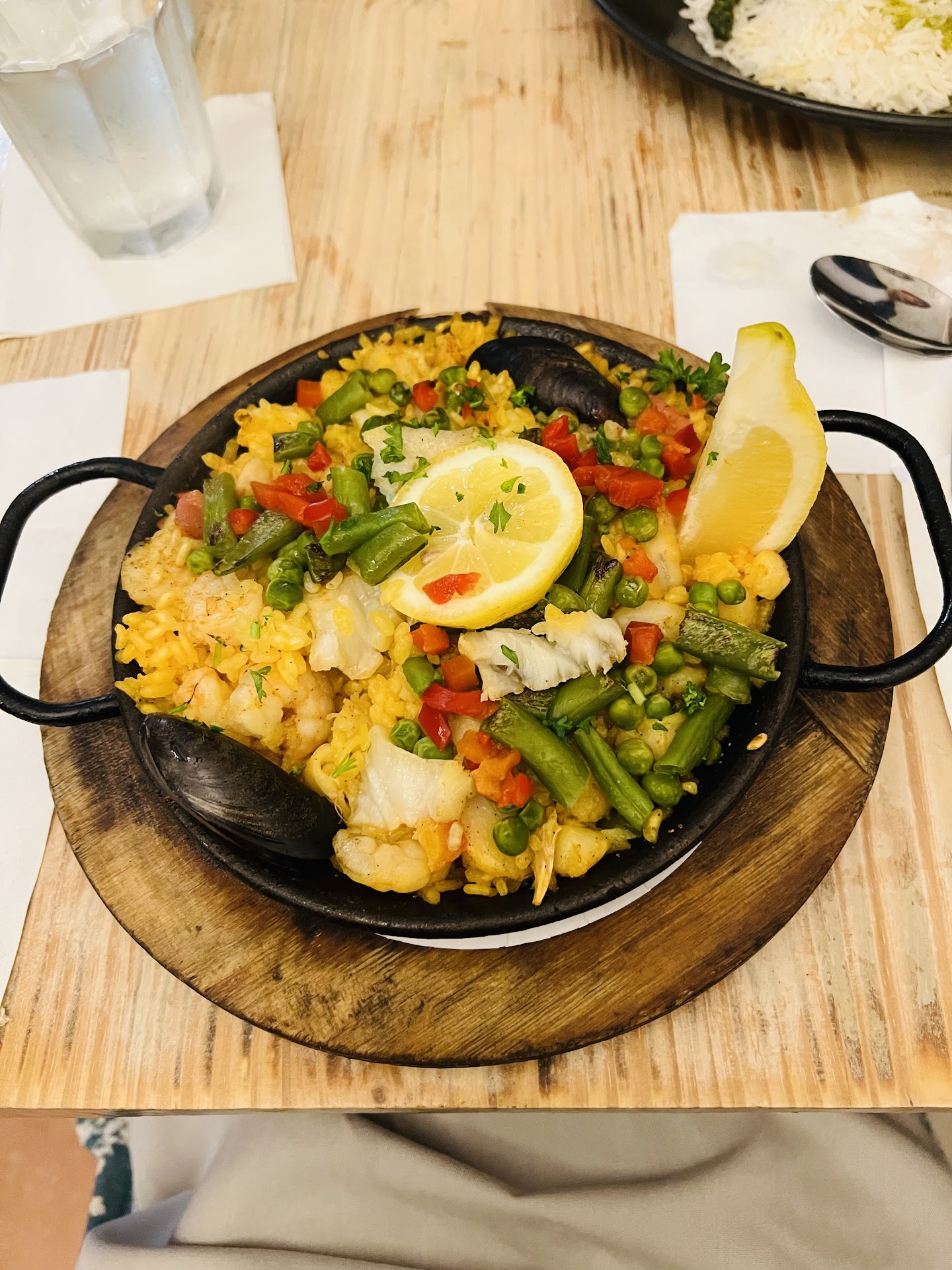 I really wanted to love this restaurant, but I have never been treated so poorly when dining out with my family. I had a reservation on April 25, 2023 at 8:30 PM. My husband and I decided to try a new local restaurant because we just found out we were expecting our first child a few days prior. I got home a little bit later than normal from my job and realized we would be showing up 5 to 10 minutes after our reservation time to the restaurant. I called and let them know. I understood that the restaurant was only open for so much longer after our allotted time, so I asked them if it would be better if I canceled and rescheduled my reservation. The woman on the phone said I was completely fine to still come in even if I showed up 5 to 10 minutes after my reservation time. We showed up exactly 5 minutes after our reservation. We walked in to a very cold greeting from the staff. They all just looked at us like we were inconveniencing them and one of them finally begrudgingly showed us to a table.We overheard two of the young ladies who are servers trash talking my husband and I. Asking each other why we would even bother showing up if we made a reservation so late at night? Mind you we werenât showing up five minutes before closing. We showed up almost 2 hours before closing. Both my husband and I have worked in the service industry before we ended up working in our careers. so this type of behavior is completely unacceptable. No excuses.After waiting for several minutes, someone finally came over and greeted us. Again, a very cold and poor greeting.My husband and I ordered water to be easy and then we both wanted to start off with salads. My husband wanted a Caesar salad and the server told told my husband to order an easier salad to make because they didnât want to have to take everything out to make a Caesar salad. Excuse me? How extremely unprofessional. Then got upset when I ordered paella. Asked me if I knew that it was going to take 30 to 45 minutes to cook it, and I said that I knew that. The pie was the whole reason I wanted to come to the restaurant. After you hearing the kitchen curse and slam things down very loudly after putting my order in. We genuinely felt so uncomfortable. After finally receiving our food, out of courtesy, we took a few bites of our meal and then immediately asked for a box. Disgustingly unprofessional. The food was good. I am attaching the pictures of my husband and I entrĂ©es below. Even eating the leftovers felt disgusting because we could not get over how badly we were treated. Even after all of this, we still left over a 20% tip because, again, we were both servers and understand what it is like. This was the first time in both of our lives that we actually considered not tipping at all. We will never return back and have warned other people of our experience at this place. You never know what people are going through behind closed doors. It takes absolutely nothing to show kindness to another person. After experiencing so many health problems and finally being able to conceive a child, we just wanted to have a beautiful night out together and celebrate. The night was ended with tears and disbelief at the amount of disrespect we received from complete...