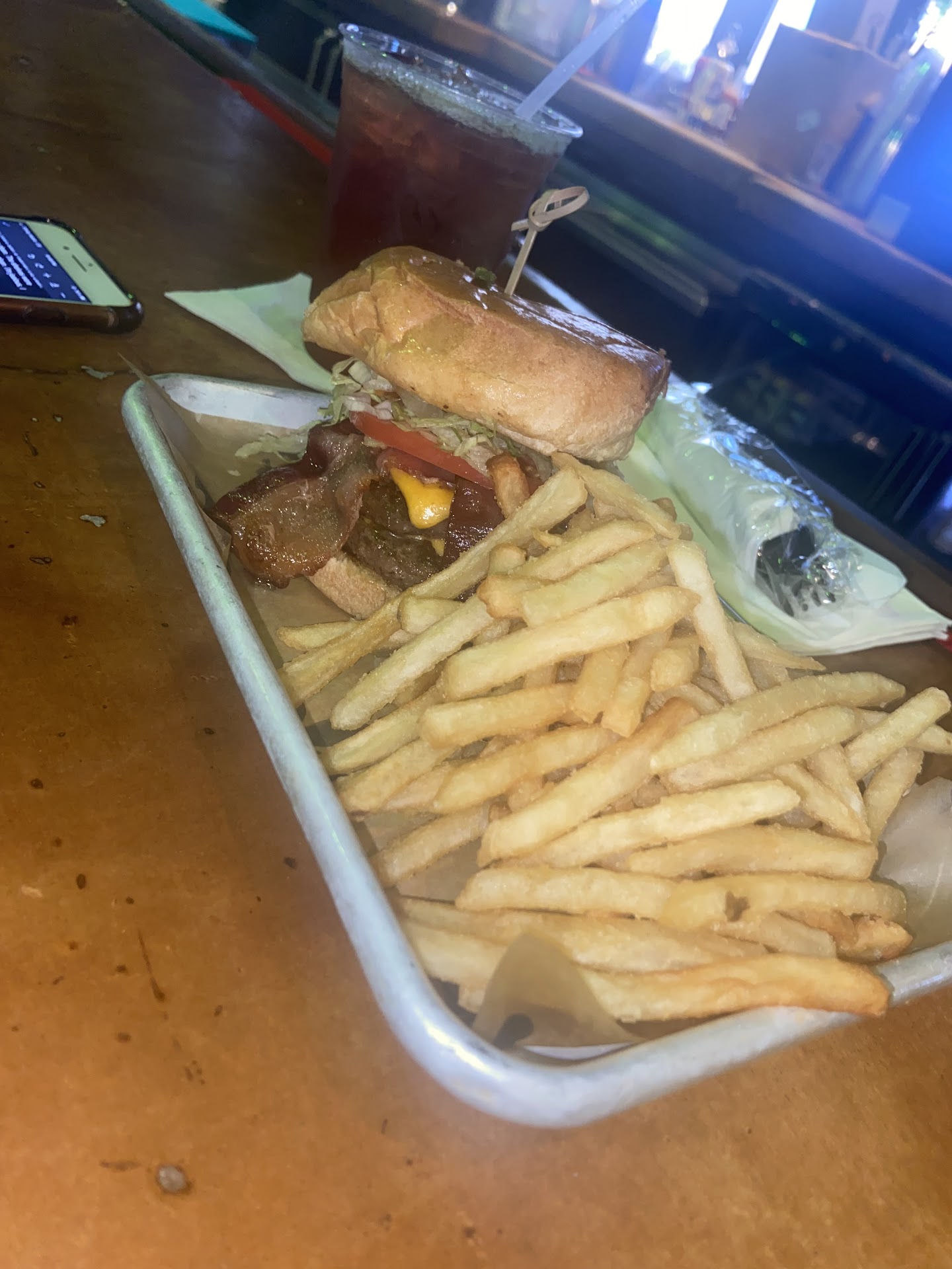 After taking a few moments to view the menu, I decided on the BBQ Bacon Cheeseburger (well done) and Substituted the Voodoo Chips for Fries (well done).