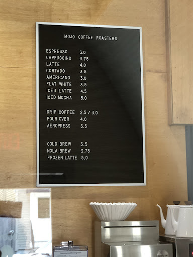 Mojo is built with corrugated metal in a half moon shape. Kind of reminds me of a fallout shelter! Retro feel! Will definitely be back! Ordered: I Ed mocha w/almond milk. They also have kombucha, Pellegrino sodas and Topo Chico in the fridge! Visited:...