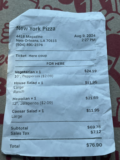 Read moreSo New York Pizza is divided up into two sides so as you face the building they have a restaurant side on the right and a bar side on the left. You can get food on both sides but each side has different hours. I've been eating in this location since before New York Pizza even moved into this building. This spot was actually the last place I ate at right before Hurricane Katrina hit the area. I was always a fan of New York Pizza at their old location and I followed them here when they moved into this current location. In fact I have been far more than just a fan as I used to absolutely love this joint as they had one of the best deals in the city with their $5 pint and slice deal where you could get a pint of beer and slice of pizza! I also really used to enjoy the fact that this place stayed open later at night so you would often find quite a decent crowd of folks in here enjoying some pints and pizza. Unfortunately the insane inflation we have been experiencing ended up killing that amazing deal which had lasted a very long time. The end of that deal also seems to have resulted in fewer folks frequenting this place as often as they used to so they also tend to often close earlier these days. This is still one of the better spots to get some later in the evening/night food and they are also open for lunch as well. They do tasty pizza, lasagna, ravioli etc. and everything else I've had has been very good here.