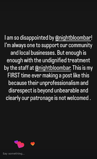 The common thread at Nightbloom Bar is clear: patrons are not valued or respected. Instead of fostering an inclusive and welcoming atmosphere, the culture at Nightbloom Bar leaves guests feeling like their presence is merely tolerated for the sake of transactions.