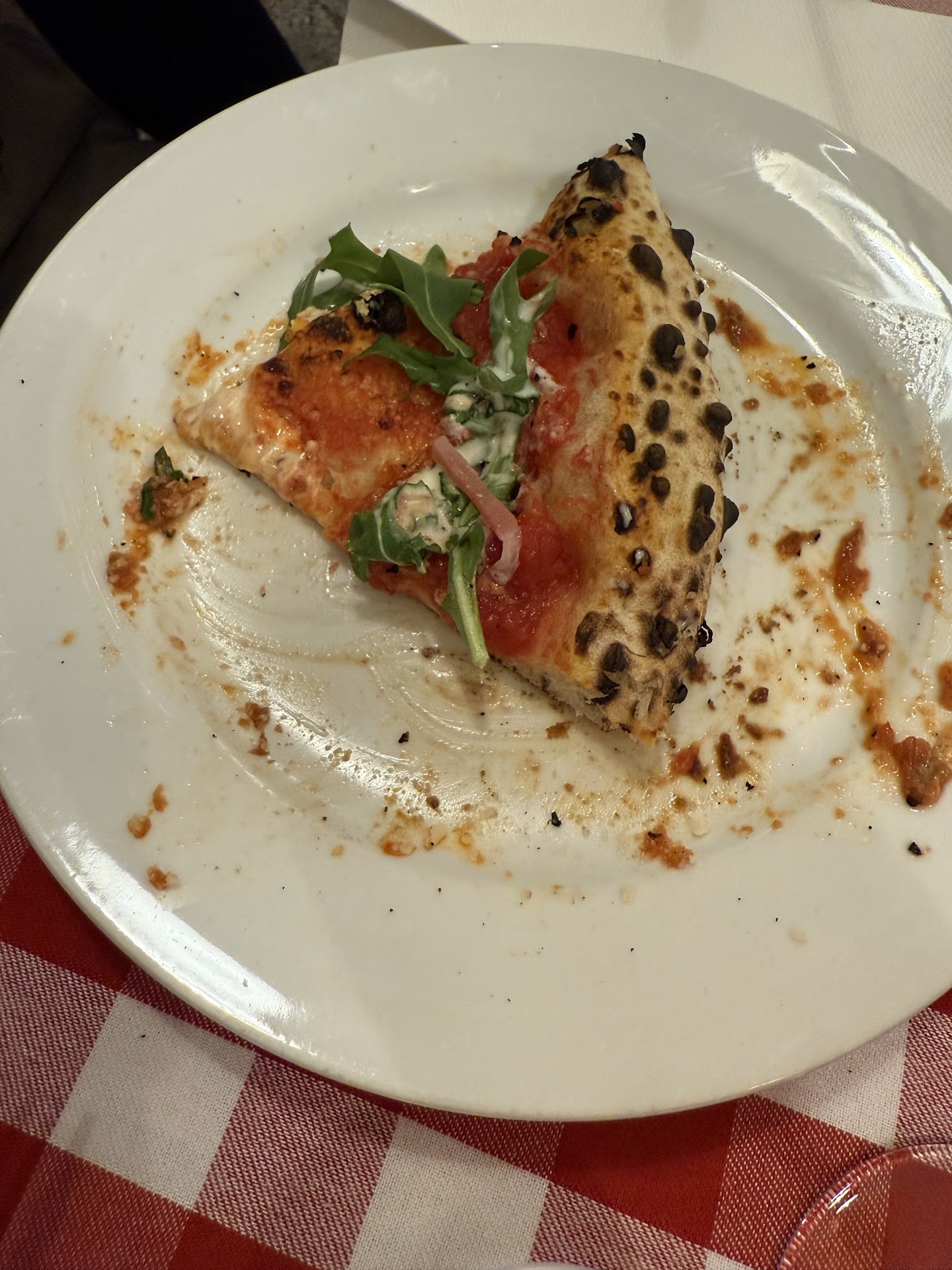 We had takeout. We got the LeBlanc pizza with added con fit garlic and a pepperoni pizza with sausage added. We also ordered a Ceasar salad. The salad was great. Dressing was fresh and bright with a lemony note. Croutons crispy and salty. The pizzas were overall good but not outstanding. I love this style of pizza but the meat toppings and mozzarella on the pepperoni pizza were very sparse. The red sauce was excellent with just the right amount of sweetness. The LeBlanc pizza was well topped however the crust was very bitter. I expect a little bitterness with wood fired pizza but this was intense and overtook any other flavors. Someone is leaving too much flour on the stone/oven floor. I think the pepperoni pizza was likely bitter too but the sauce offset that bitterness. I can tolerate some bitterness but it was pretty harsh with the Leblanc. I can see this being a reason for future complaints.