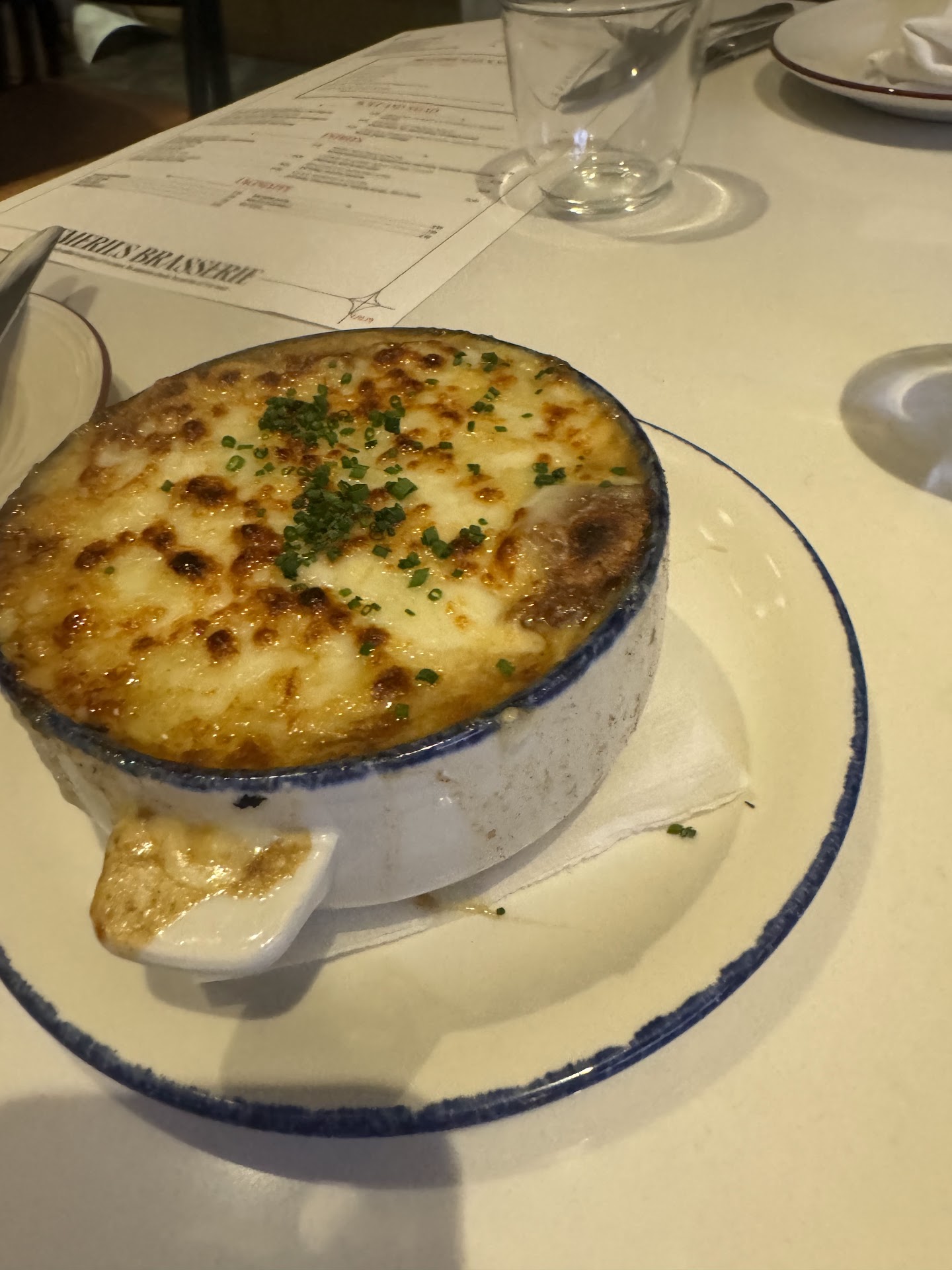Hereās what we had: Appetizers: Baked Brie, Tarte Flambe, Steak Tartare Entrees: Kicked-up Onion Soup & Butter Lettuce Salad, Steak Frites, Herb-Roasted Salmon, Lobster Pot Pie, Chicken Breast, Beer-steamed Mussels I was first surprised that the menu didnāt lean into French cuisine as much as I had expected. Baked Brie, Steak Tartare, Onion Soup, and Steak Frites do not a French menu make. The menu was uninspired in my experience with French and higher-end dining.