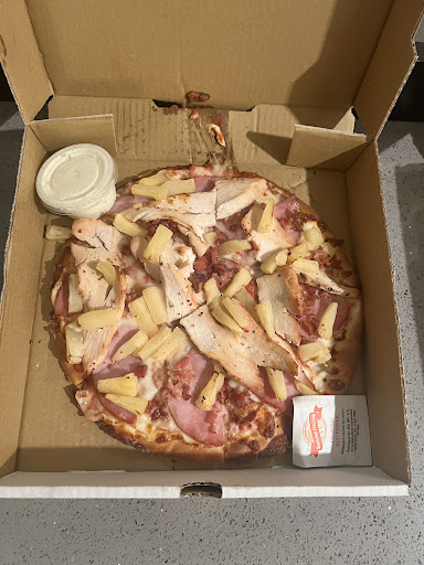 Coworkers ordered a small thin crust Garden Pizza. It came out a large. Easily can feed 4-6 people. The pizza itself was swimming in grease from too much cheese, the crust felt under-cooked, and the toppings itself felt odd and also like something was missing.