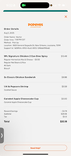 Read moreWe had family visit from Texas , they like Popeyes so we decided to go here. 4/21/25 around 8pm , we ordered in the drive thru. My father is law was SHOCKED with how rude the staff was. Horrible customer service and attitude. All we said was hello at the window, because no one acknowledged us as we pulled up. Whoever was taking orders yelled "I'm with another customer!!" Then continued to talk bad about our family while her mic was still on/we could hear her complaining through the speaker. Shocked with the employees attitude, we forgot to order drinks, we tried to add drinks when we paid and were told no. Also asked for ketchup and were told they had no ketchup. They're promoting the fried pickles but were out of those as well. Our fries were hard and cold, dirty rice was also cold. Management needs to train their employees on customer service. It's unacceptable that paying customer are being treated this way! Like we're annoying y'all by ordering food. No one is forcing y'all to work there, if you hate your job so much then quit!!...