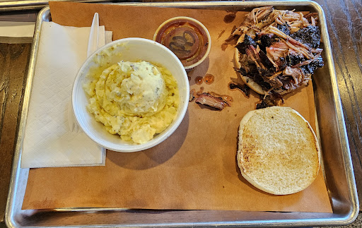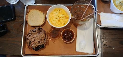 Came in randomly after receiving a ridiculous wait time for Bearcat that no food is worth waiting for. Pour House was a chance encounter. The woman behind the bar wasn't very attentive and wasn't very interactive. She made us get up from our table when the way the tables are, it would be a lot more convenient for the person who is supposed to be serving us, to serve it to us. The menu was small and had very tantalizing options, however, two of the things our small group had tried to order, they were apparently out of. Chips for nachos, and no burgers... disappointing. Overall though, the food that we received was top quality and superb flavor. The maple bacon whiskey drink, pass up on it. It's weird and too strong, this coming from a heavy drinker. Overall I would go back, just because it was some amazing BBQ, but the place has plenty of room for improvement. I ordered the Jayhawker with hickory sauce (all the sauces were phenomenal!) And Mac n cheese. Also the bomb. Give the place a try if you love amazingfoods, jjsy don't expect...